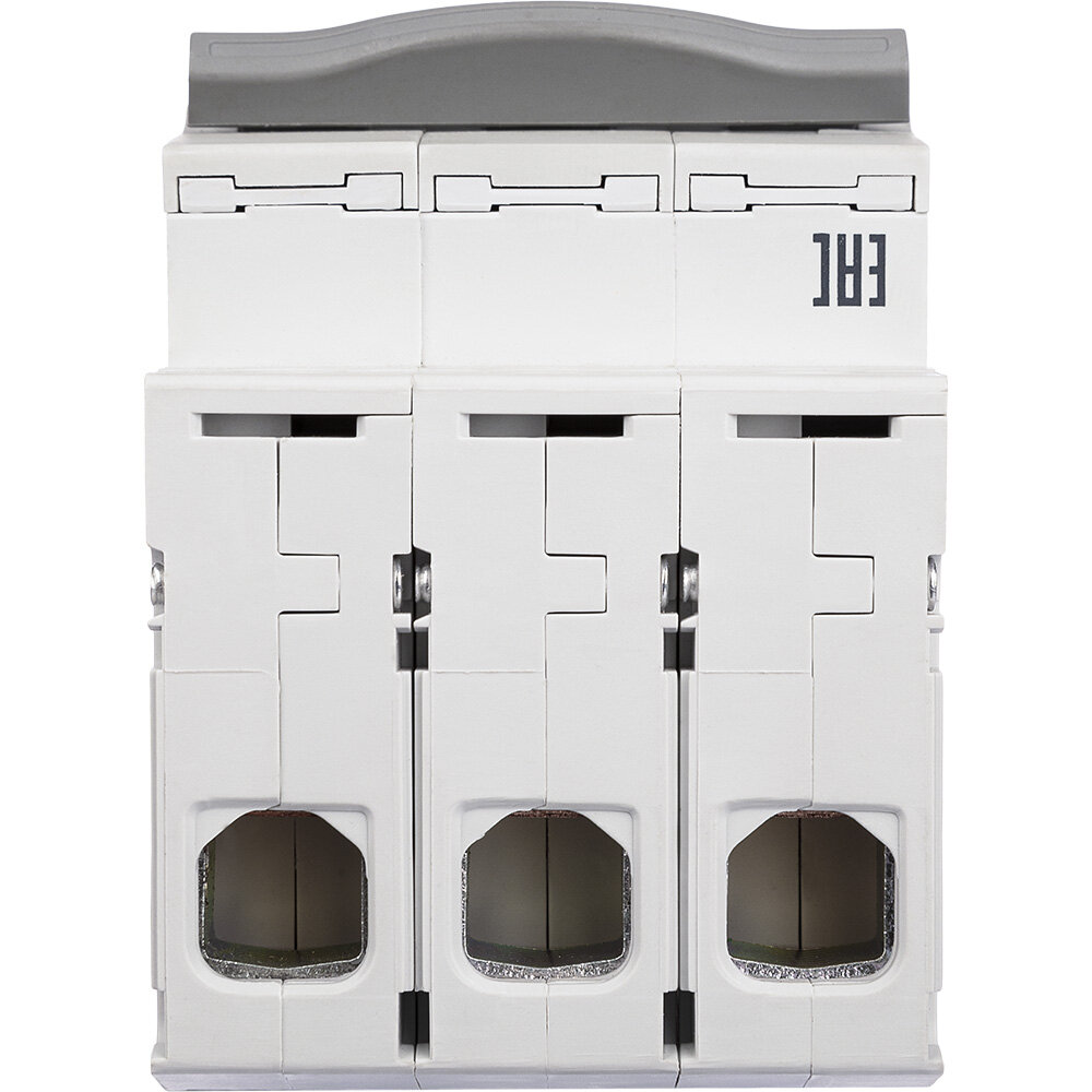 Выключатель-разъединитель Legrand RX3 63А 3П прекращает подачу электрического тока в цепи. Это обеспечивает безопасность при ремонте оборудования.Основные особенности:крепление к DIN-рейке внутри распределительного щитка с помощью специальных защелок;нестираемая маркировка, которую видно при любом положении рычага;рабочая температура варьируется от -25 до +70 ºC;модель рассчитана на 10000 электрических и 20000 механических операций;для нанесения дополнительных меток есть место на поверхности корпуса.Выключатель используют в небольших коммерческих зданиях и жилых домах.