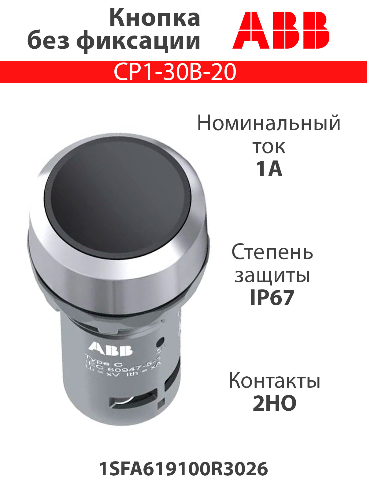1SFA619100R3026 Кнопка CP1-30B-20 черная без фиксации 2HO Упаковка (10 шт.) ABB