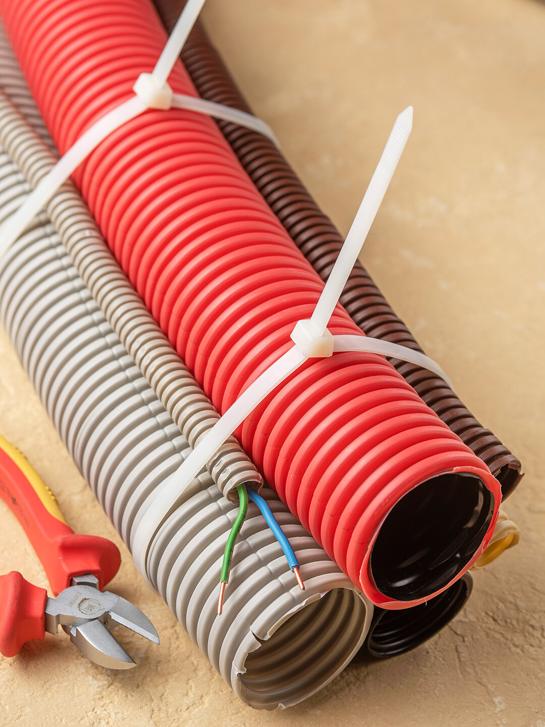 Хомуты серии FlexLock предназначены для увязки кабелей и проводов в пучок и монтажа кабельных линий и проводников. Изготовлены из полиамида 6.6, который обладает хорошей устойчивостью к маслам, смазкам, масляным производным, хлоридным растворителям, устойчивостью к слабым кислотам и УФ-лучам. Кабельные стяжки серии FlexLock имеют самофиксирующийся ремешок с блокирующим механизмом. При производстве кабельных стяжек черного цвета добавляется угольный порошок, который является одним из наиболее эффективных стабилизаторов. Он улучшает физические свойства продукции в стойкости к погодным условиям и УФ-излучению (прямые солнечные лучи). Наборы хомутов в банках представляют собой кабельные стяжки наиболее распространенных габаритов и разных цветов собранных в одной пластиковой упаковке. Благодаря прозрачной пластиковой упаковке такие наборы легко транспортировать и легко идентифицировать какой цвет и габарит хомута находится в упаковке. Разные цвета очень удобны в применении в быту и для маркировки.