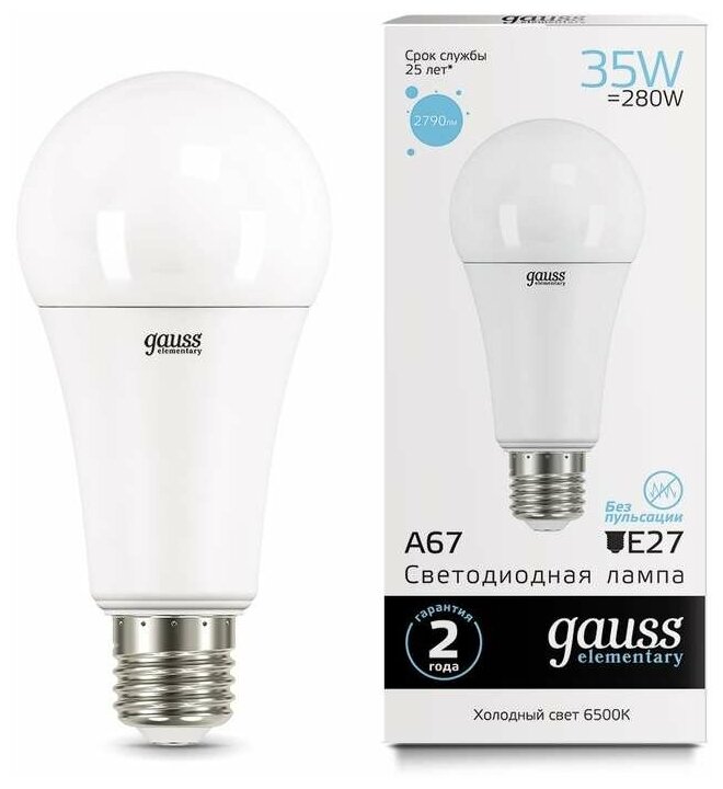 На сегодняшний день товар «70235 Лампа LED Elementary A67 35W E27 2790lm 6500K 1/10/50 Gauss Elementary 70235» можно купить с кешбеком в 2 магазинах: E2e4online, Яндекс.Маркет