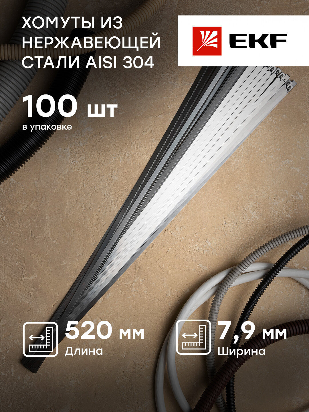 plc-fl-tss-304-7.9x520 Хомут AISI 304 из нержавеющей стали 7.9x520 (100 шт.) FlexLock PROxima EKF