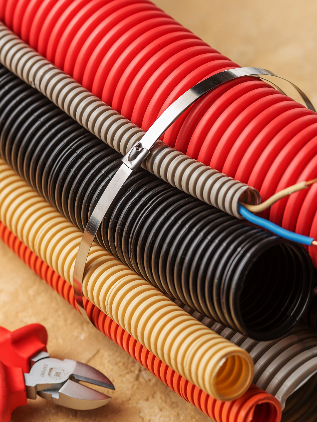 Стяжки для монтажа кабелей и формирования жгутов Во время выполнения прокладки кабелей и формирования жгутов часто используется хомут пластиковый. Это универсальное монтажное приспособление, с помощью которого можно изготовить удобный в монтаже кабель-жгут, выполнить крепеж провода к стойке оборудования или иные операции. Ассортимент стяжек и хомутов кабельныхВ интернет-магазине «Электробаза» представлен большой ассортимент различных монтажных приспособлений высокого качества и с приемлемыми характеристиками. Их использование при конструировании различного технологического оборудования упрощает процесс, а также обеспечивает надежность и устойчивость к вибрациям. Производитель EKF для производства монтажных материалов применяет качественное сырье, а само производство осуществляется на современном оборудовании. Также можно приобрести термоусадочную трубку тут всех диаметров и цветов. В продаже есть следующие разновидности строительных хомутов пластиковых: дюбель хомуты для цилиндрического кабеля черные и белые для крепежа кабеля к стене; хомут Р6.6 стандартный длиной 150-300 мм; дюбель хомуты для плоского кабеля. Особенности хомутов пластиковых для крепления кабеля Стяжка хомут марки EKF обладает безоговорочными преимуществами: производятся из прочного и упругого пластика; представлены в продаже разных типоразмеров; легко применяются. Заказать стяжки, хомуты, термоусадку и прочие товары для монтажа, изоляции электрической проводки можно по выгодной цене только у нас со скидкой. Осуществляем доставку партии по Москве и России.