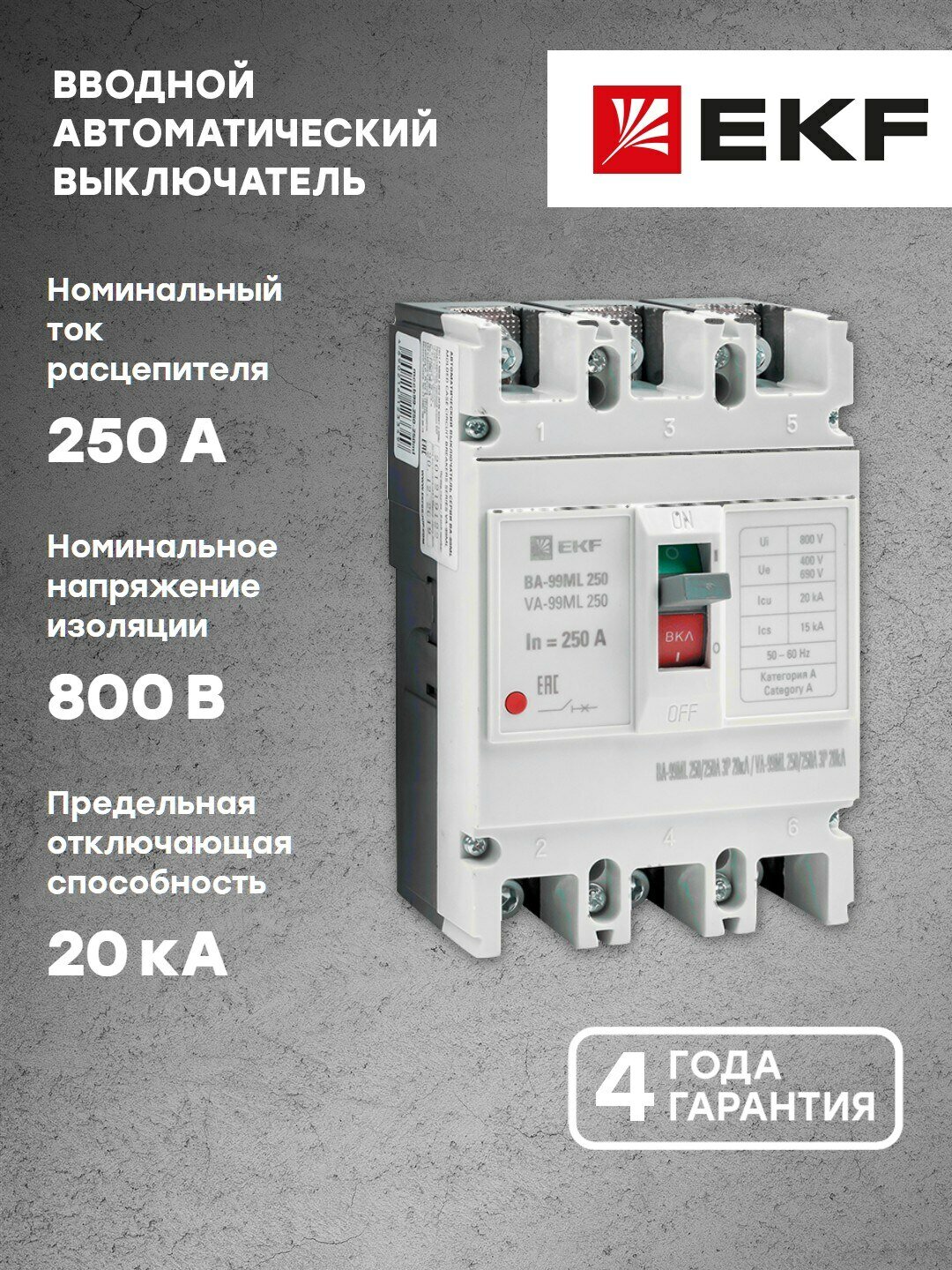 | Номинальный ток | 250 А |