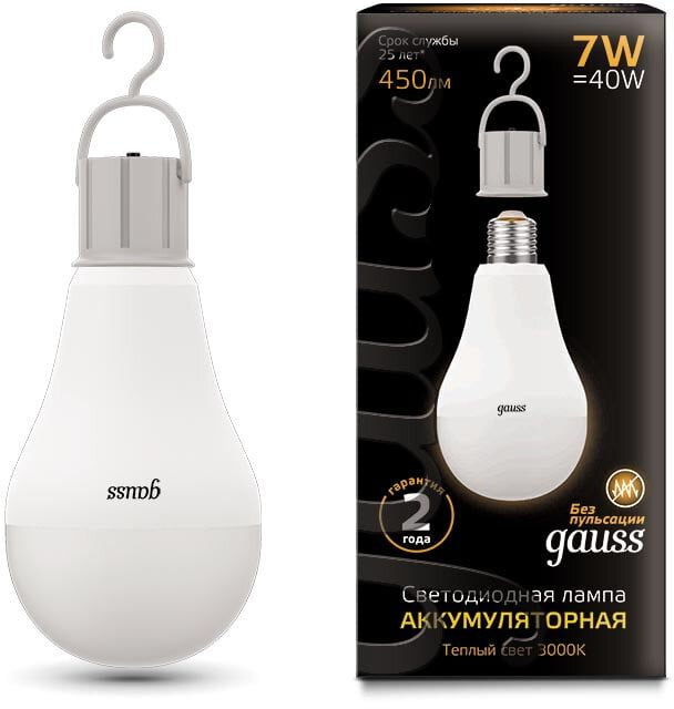 102402107 Лампа LED A60 7W E27 450lm 3000K с Li-Ion аккумулятором 1/10/60 Gauss