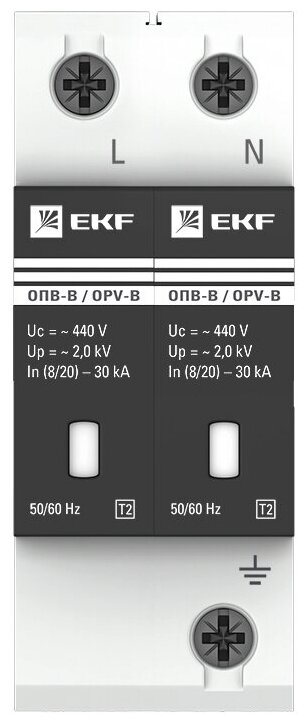 opv-b2 Ограничитель импульсных напряжений ОПВ-B/2P In 30кА 400В с сигн. PROxima EKF ОПВ-B 2P