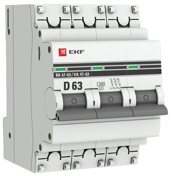 mcb4763-3-63D-pro Выключатель автоматический модульный 3п D 63А 4.5кА ВА 47-63 PROxima EKF