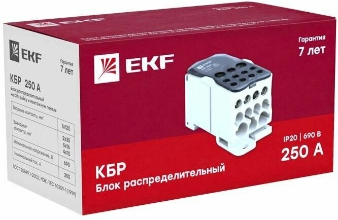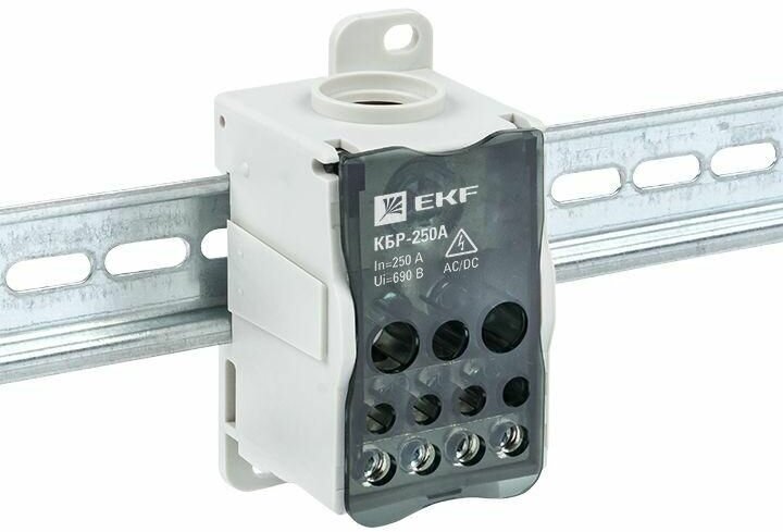 ОПИСАНИЕ. Блок распределительный КБР EKF PROxima предназначен для обеспечения удобного распределения питания в шкафах и используется в качестве переходного клеммника для подключения кабельной жилы большего сечения к нескольким проводникам меньшего сечения, а также для организации главной заземляющей шины (ГЗШ). ГОСТ Р 50030.7.2002. ПРЕИМУЩЕСТВА. Корпус выполнен из не поддерживающего горение полиамида PA66. Конструкция представляет собой ступенчатый монолитный блок в изолированном корпусе. Универсальное крепление: на монтажную панель, на DIN-рейку 35 мм. Специальные «рельсы» на боковой части корпуса позволяют соединять блоки в единую многополюсную конструкцию. Прозрачная лицевая панель препятствует прикосновению к токоведущим частям. ПРИМЕНЕНИЕ. • В электрощитах; • в промышленных установках; • на объектах электроснабжения.