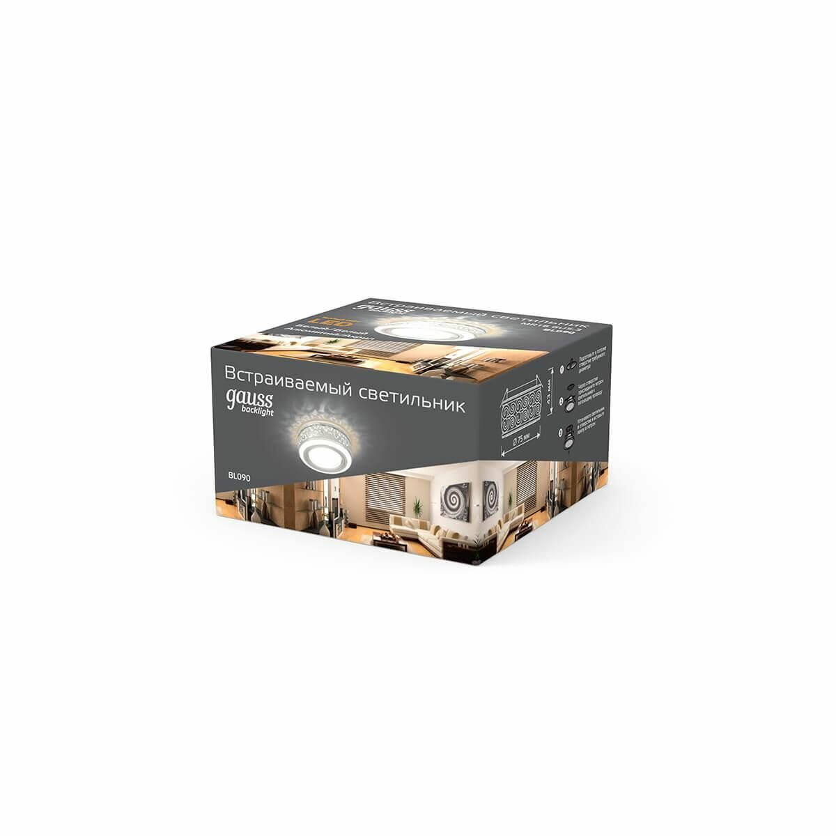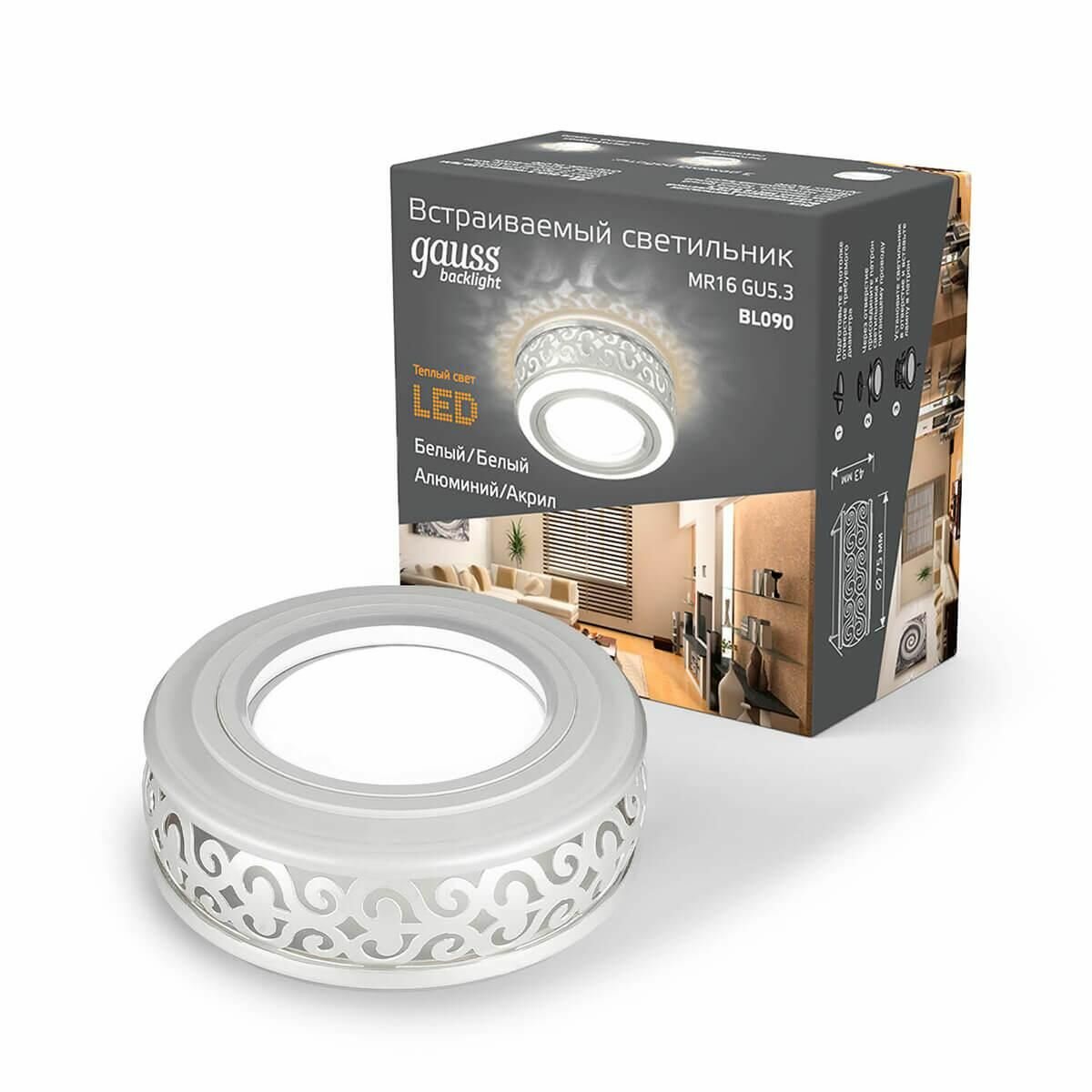 Встраиваемый светильник Backlight BL090 - продукт известной компании Gauss (Китай). Имеет максимальную мощность 50 Вт, освещает площадь до 4 кв. м. Отлично подойдет для таких мест, как гостиная, прихожая и коридор, спальня, кухня. Впишется в интерьеры следующих стилей: современный.