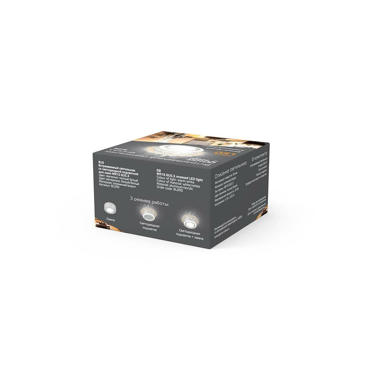 BL090 Светильник Backlight LED 3W 3000K 1/30 Gu5.3 кругл. белый/белый Gauss