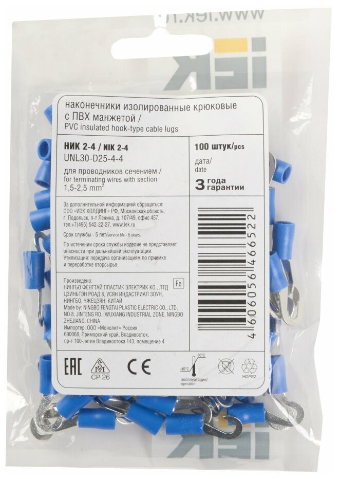 UNL30-D25-4-4 Наконечник НИК 2-4 крюк 15-25мм (100 шт) Упаковка (15 шт.) IEK