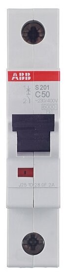 S200 2CDS251001R0504 Автоматический выключатель однополюсный 50А (6 кА C) ABB S201 1п C 6кА 50А