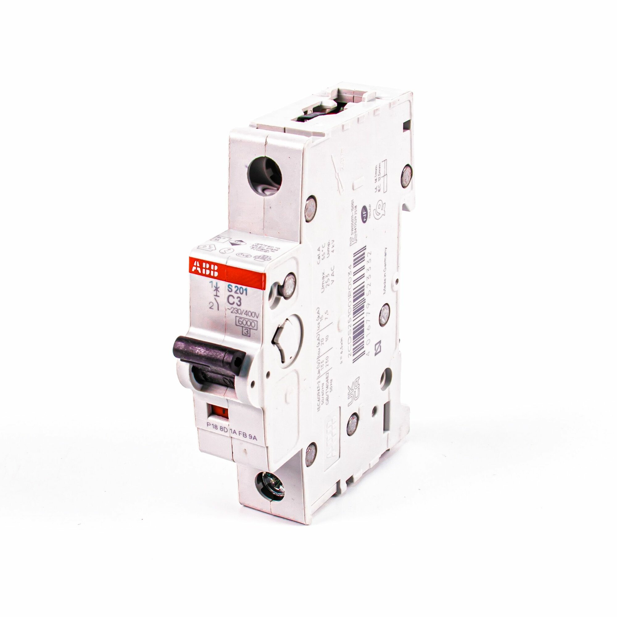 S200 2CDS251001R0034 Автоматический выключатель однополюсный 3А (6 кА C) ABB S201 1п C 3А 6кА