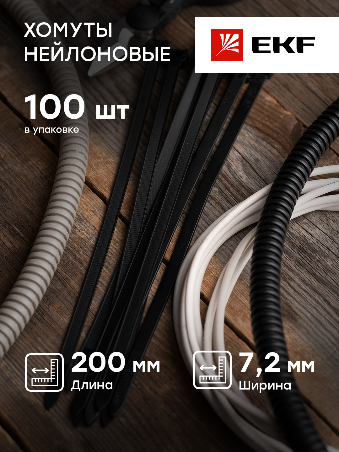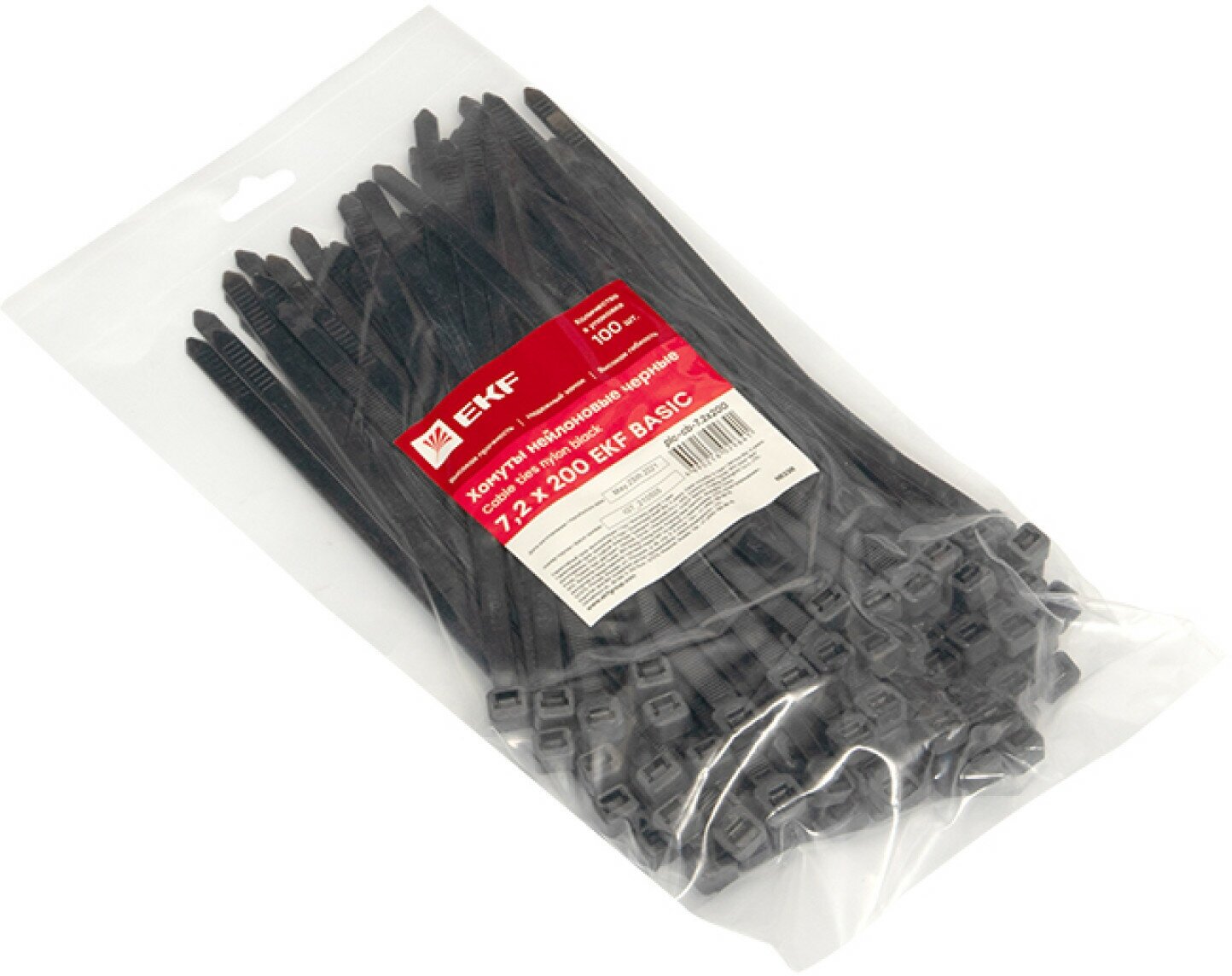 plc-cb-7.2x200 Хомут нейлоновый черный (72х200) (100шт.) Basic Упаковка (10 шт.) EKF