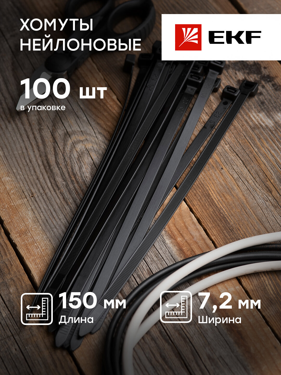 plc-cb-7.2x150 Хомут нейлоновый черный (72х150) (100шт.) Basic EKF