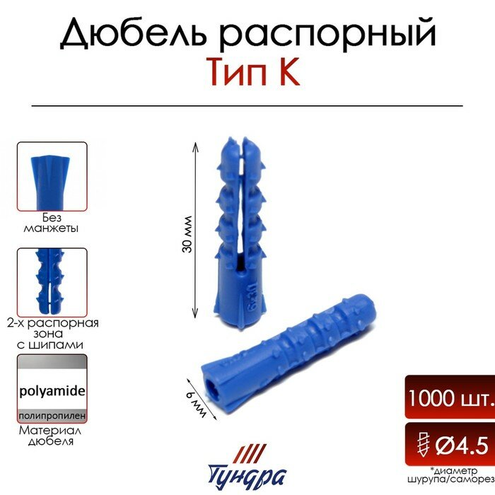 Tchappai Дюбель распорный 6х30 (синий 1000 шт.) Tech-KREP (00005342)