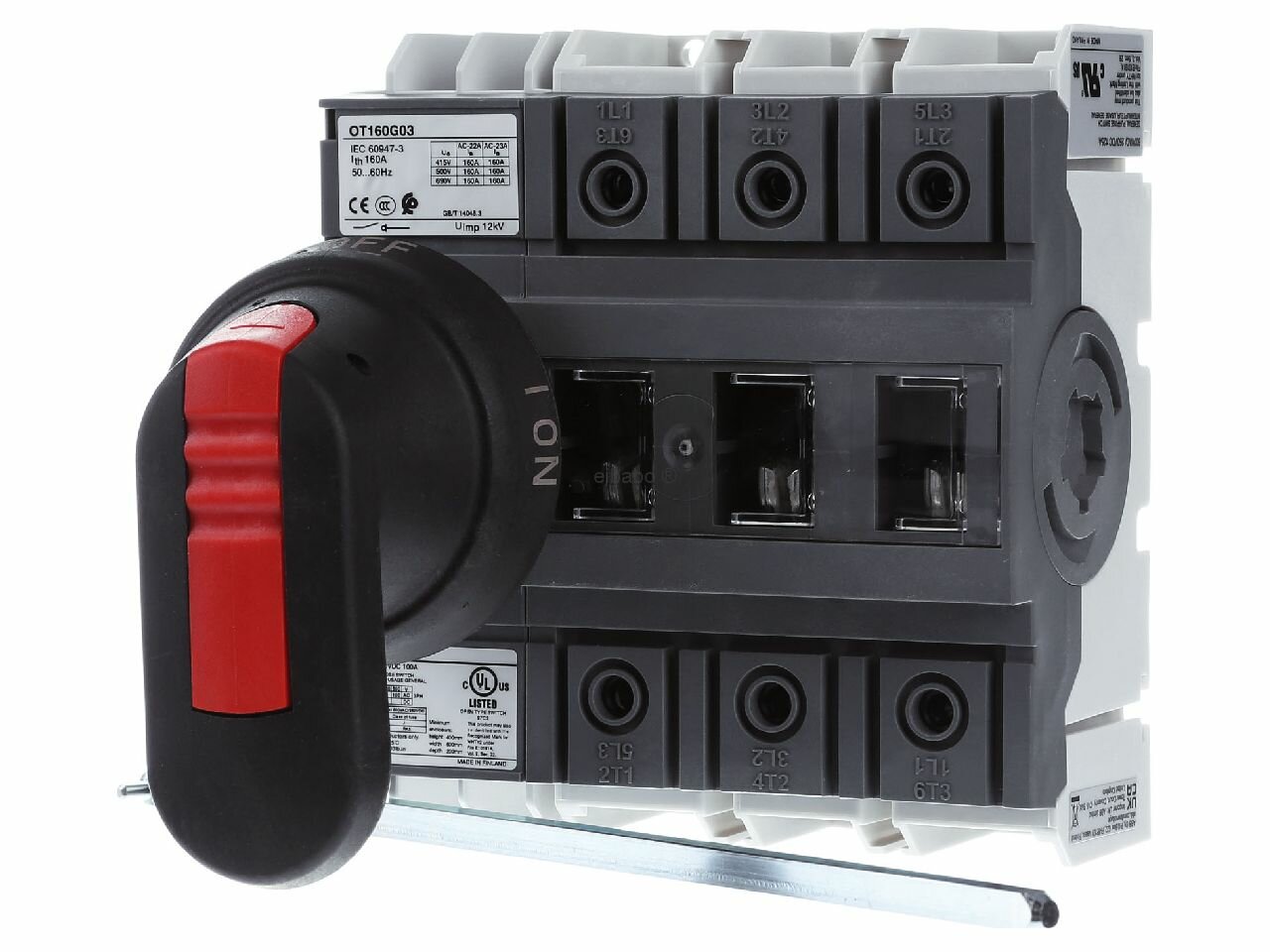 1SCA135139R1001 Рубильник 3х полюсный на DIN OT160G03P (в комплекте с рукояткой OHB65J6 и переходником OXP6X210) ABB