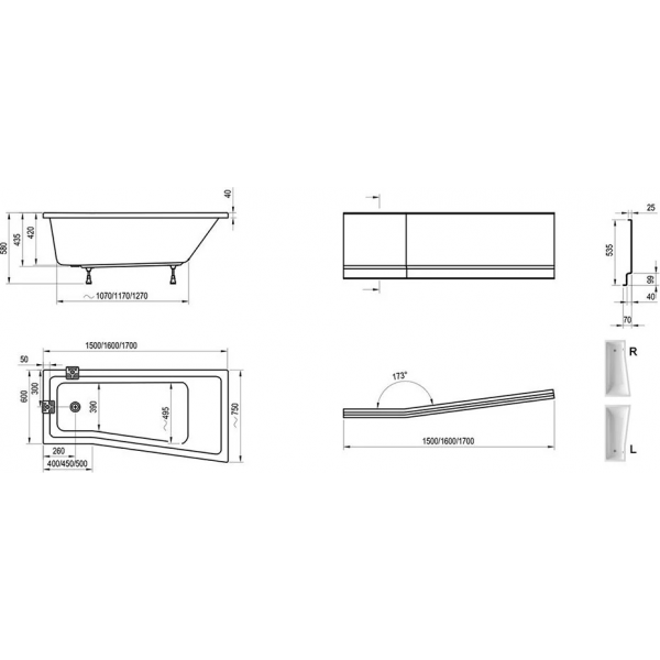 | Угол ванны | Универсальная |