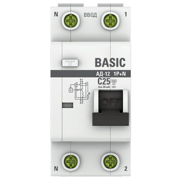 Модель: АД-12 Basic 1P+N 25А 30мА электронный тип АС C 4.5кА
