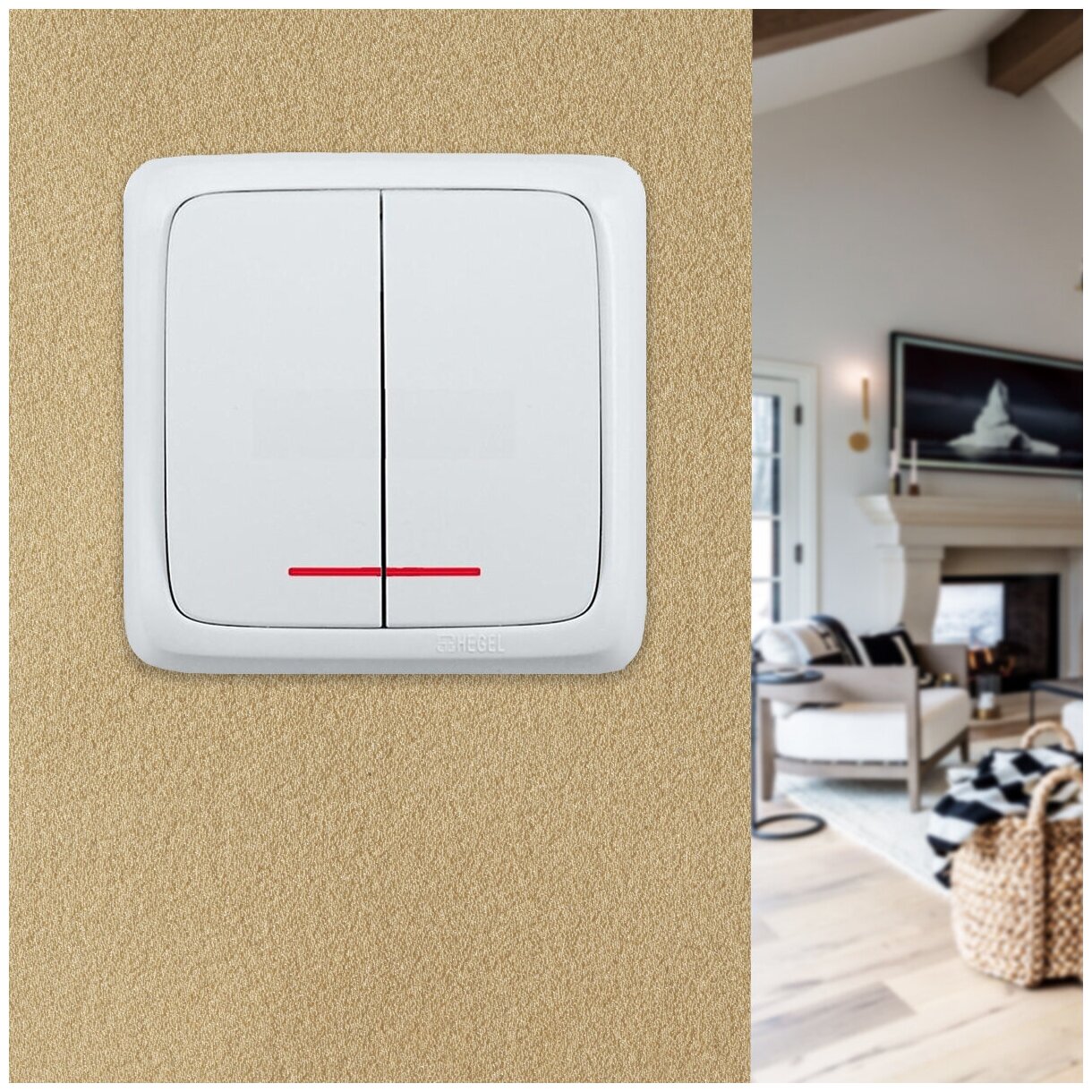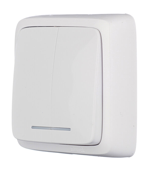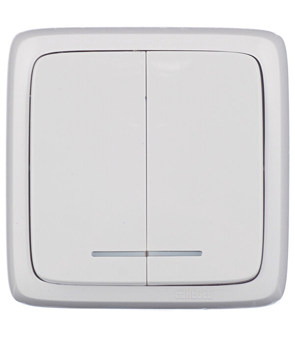 ВА10-154 Выключатель двухклавишный наружный с изоляционной пластиной с индикацией белый 10А Упаковка (100 шт.) HEGEL