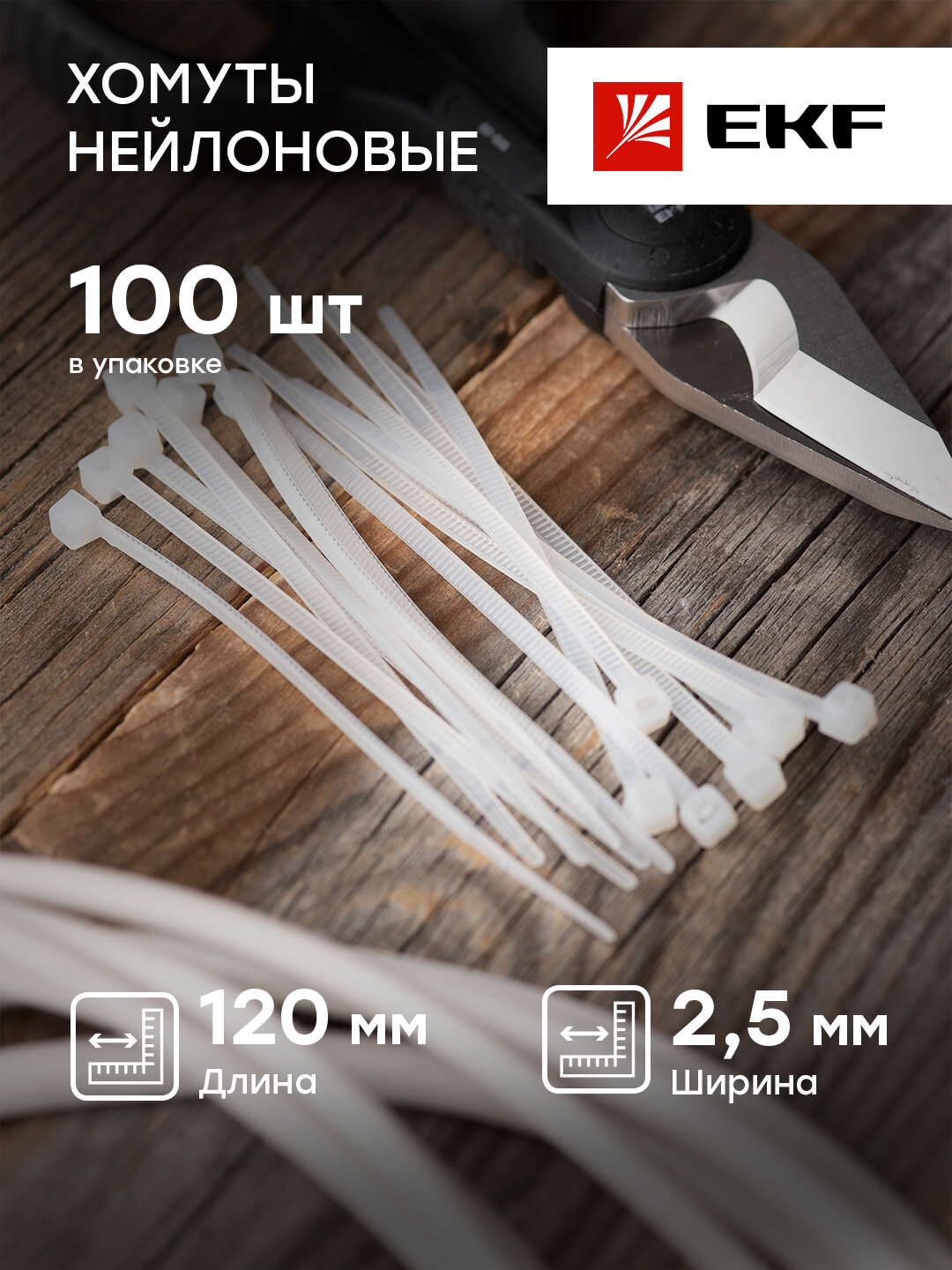 plc-fl-ctsw-2.5x120 Хомут P6.6 стандартный (б) 2.5x120 (100шт) FlexLock PROxima EKF