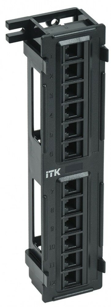 Коммутационные панели или патч-панели являются важнейшей частью любой СКС и IT-инфраструктуры здания и сооружения с большим количеством информационных розеток и терминальных портов конечных пользователей, которые необходимо коммутировать на порты активного сетевого оборудования, размещенного в серверных и распределительных узлах.В зависимости от способа крепления, масштабности кабельной системы, типа сети ITK изготавливает патч-панели для настенного монтажа или монтажа в 19-дюймовый конструктив, по количеству портов: 12-, 24-, 25-, 48-, 50-, категорий: 3 (телефонные), 5E, 6, 6A, в экранированном исполнении и без защитного экрана.Патч-панели для монтажа в 19" шкаф или стойку соответствуют стандарту 19" (482,6 мм), имеют отверстия с левой и правой стороны для крепления на профиль, производятся высотой 0,5, 1 или 2 юнита.На передней стороне все патч-панели ITK имеют специальную площадку для дополнительной маркировки и цифровую нумерацию портов, на обратной стороне модули IDC имеют цветовую и цифровую нумерацию. Также для облегчения монтажа и укладки кабелей имеются изделия с кабельным органайзером спереди или сзади.Патч-панели соответствуют международным стандартам UL 1863, ISO/IEC 11801:2002, TIA/EIA-568-B, кодировка проводников в соответствии с T568B и A.Поставляются в картонной коробке с крепежом.ПреимуществаСоответствие международным стандартам и ГОСТ Р.Монтаж на стену.Двойная понятная маркировка IDC-модулей и портов.Расширенный частотный диапазон работы.Увеличенное количество циклов включения-отключения.Подходят для кабелей и патч-кордов диаметром 22-26 AWG всех производителей.Применимы для сетей ISDN, 10baseT, 100baseT, 1000baseT, EIA RS 232/485, 155 Mbit ATM, Token Ring.