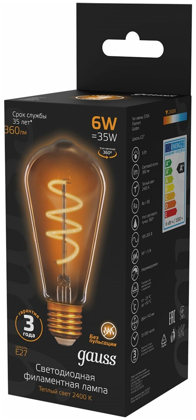 Сервис сравнения цен СкидкаГИД предлагает сравнить цены на товар «157802006 Лампа LED Filament ST64 Flexible E27 6W Golden 2400К 1/10/40 Gauss Filament 157802006»