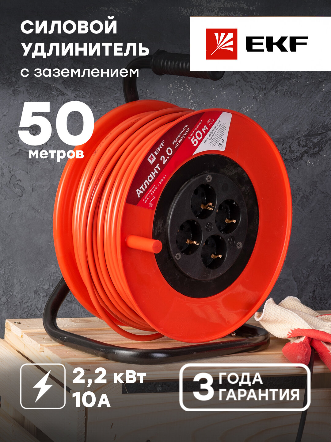 UKA02-10-310-4-50 Удлинитель на катушке "Атлант 2.0" 4 гнезда 50м с заземлением ПВС 3*10 10А/22кВт PROxima Упаковка (2 шт.) EKF Атлант 2.0 PROxima