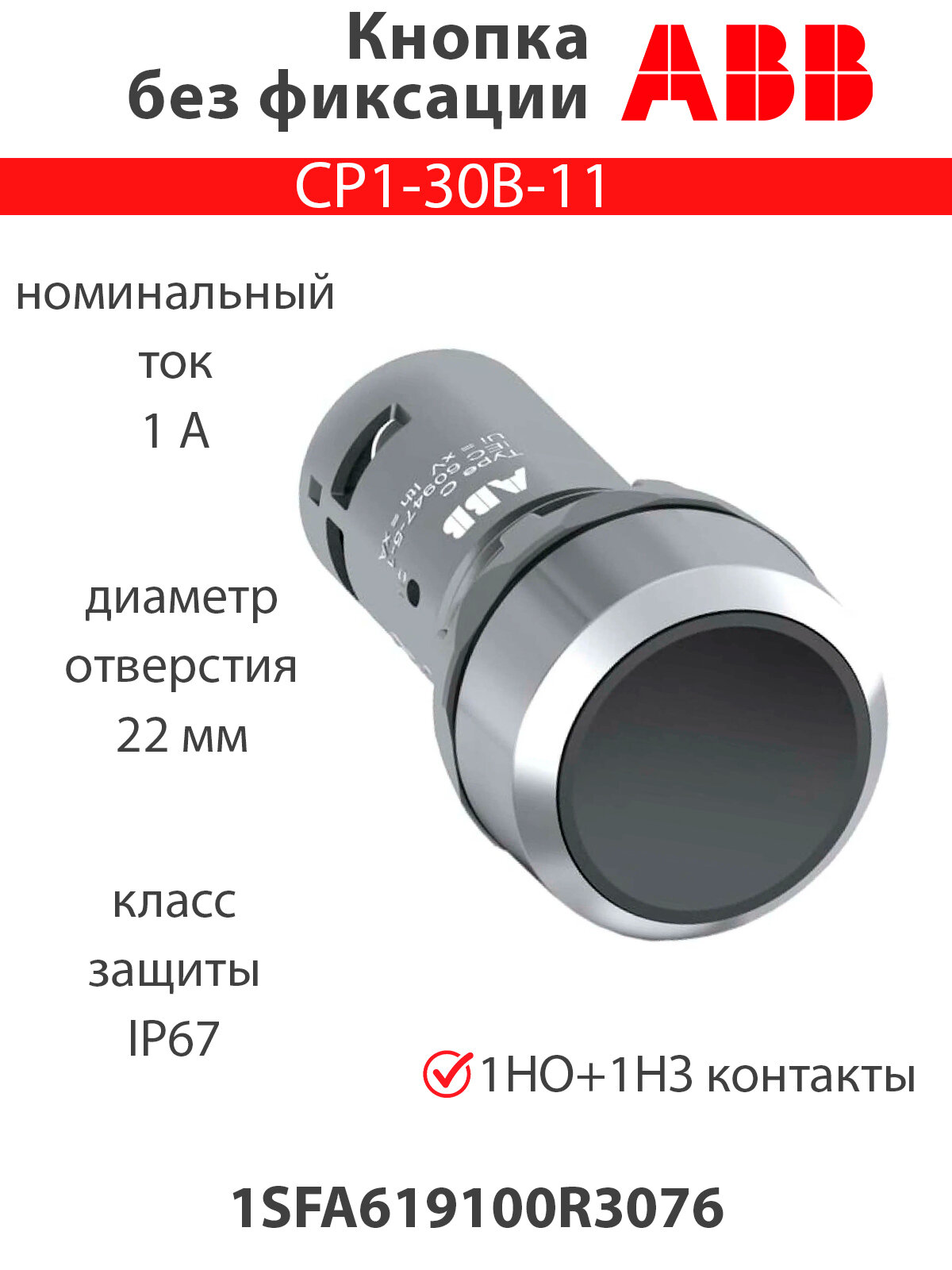 1SFA619100R3076 Кнопка CP1-30B-11 черная без фиксации 1НО+1HЗ ABB