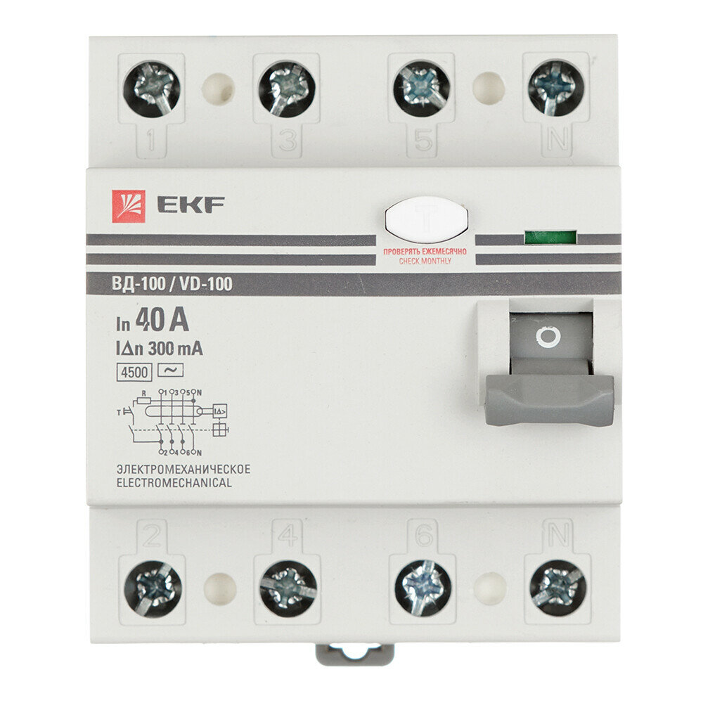 elcb-4-63-300-em-pro Устройство защитного отключения УЗО ВД-100 4P 63А/300мА (электромеханическое) PROxima EKF