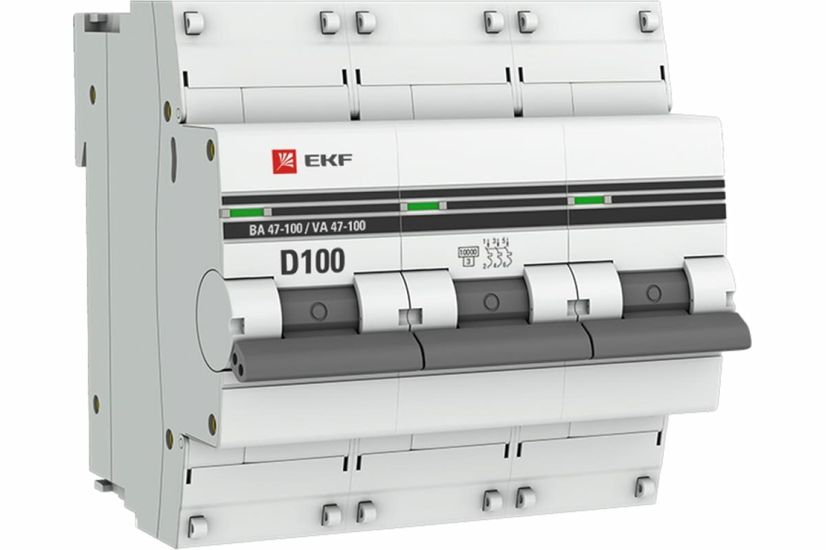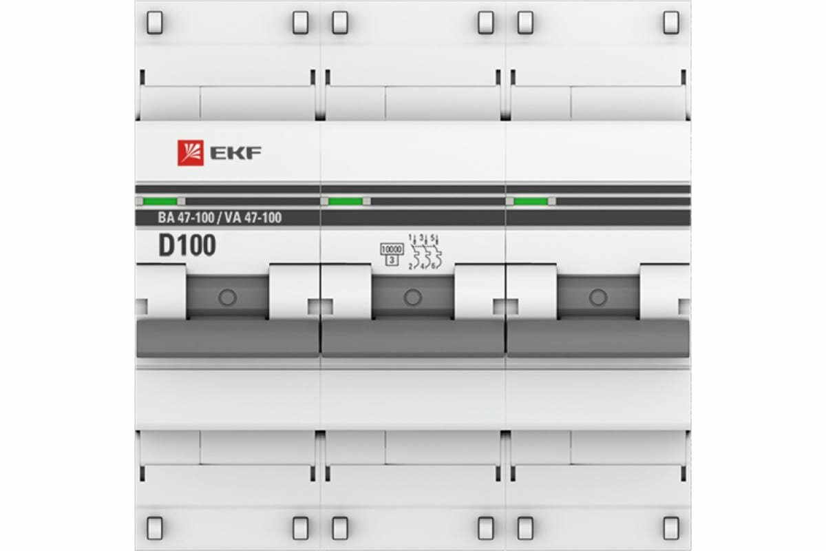 EKF Автоматический выключатель 3P 100А (D) 10kA ВА 47-100 PROxima mcb47100-3-100D-pro