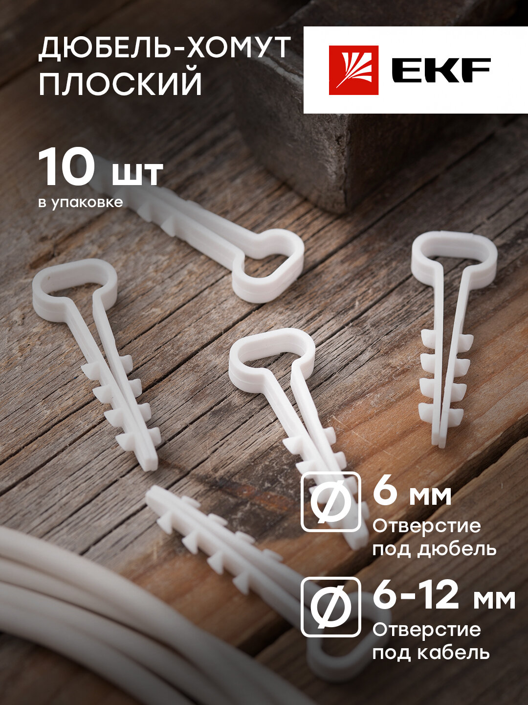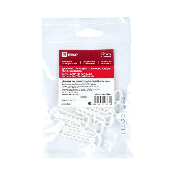 plc-cd-6x12w-r Дюбель-хомут (6х12 мм) для плоского кабеля белый (10 шт.) PROxima EKF