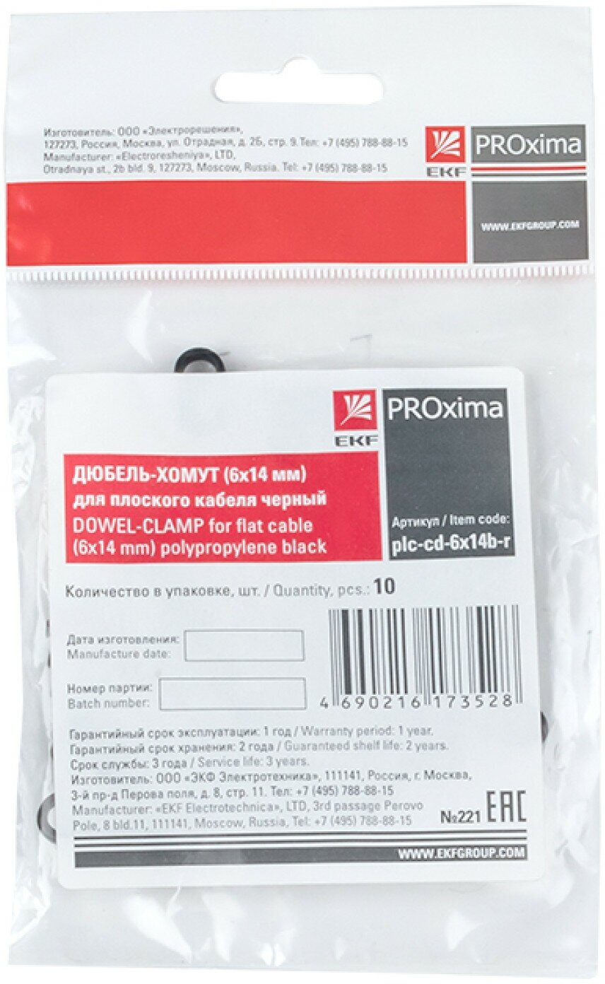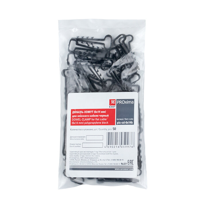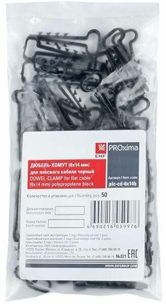plc-cd-6x14b-r Дюбель-хомут (6х14 мм) для плоского кабеля черный (10 шт.) PROxima EKF