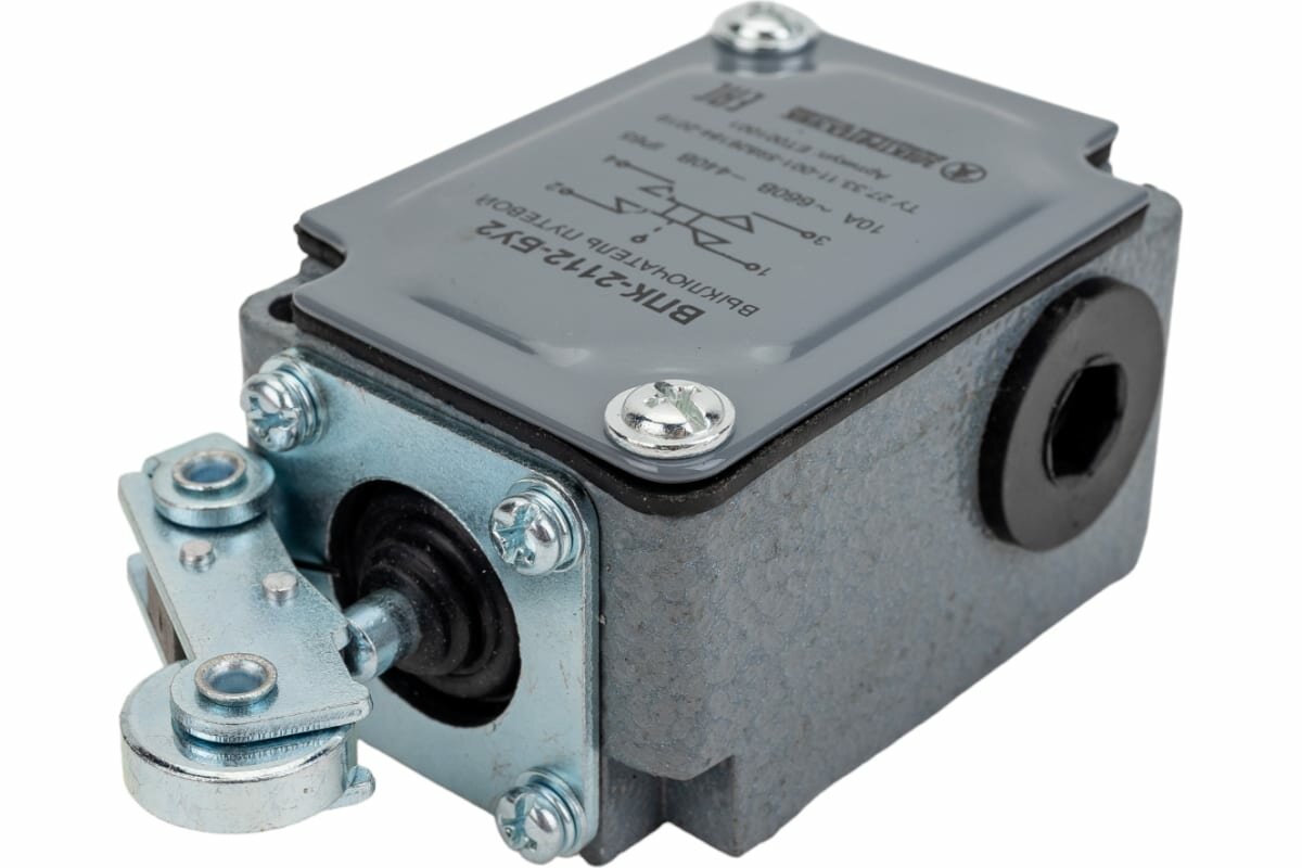 Выключатель конечн. путев. ВПК 2112 (рычаг с роликом 10A) Электротехник ET001001• назначение Выключатель концевой (конечный) предназначен для коммутации электрических цепей при механическом воздействии подвижной части оборудования на рабочую часть. • Область применения Автоматические станки, конвейерные линии, автоматические ворота и прочие механизмы, где важно отключение электропитания в конце рабочего хода. • Принцип действия При нажатии на подвижную часть выключателя (рычаг, кнопку) происходит замыкание контактов и коммутация электрической цепи. При прекращении механического воздействия контакты возвращаются в исходное состояние. • Дополнительные принадлежности ИЛИ аксессуары кабель для подключения, типа КВВГ.