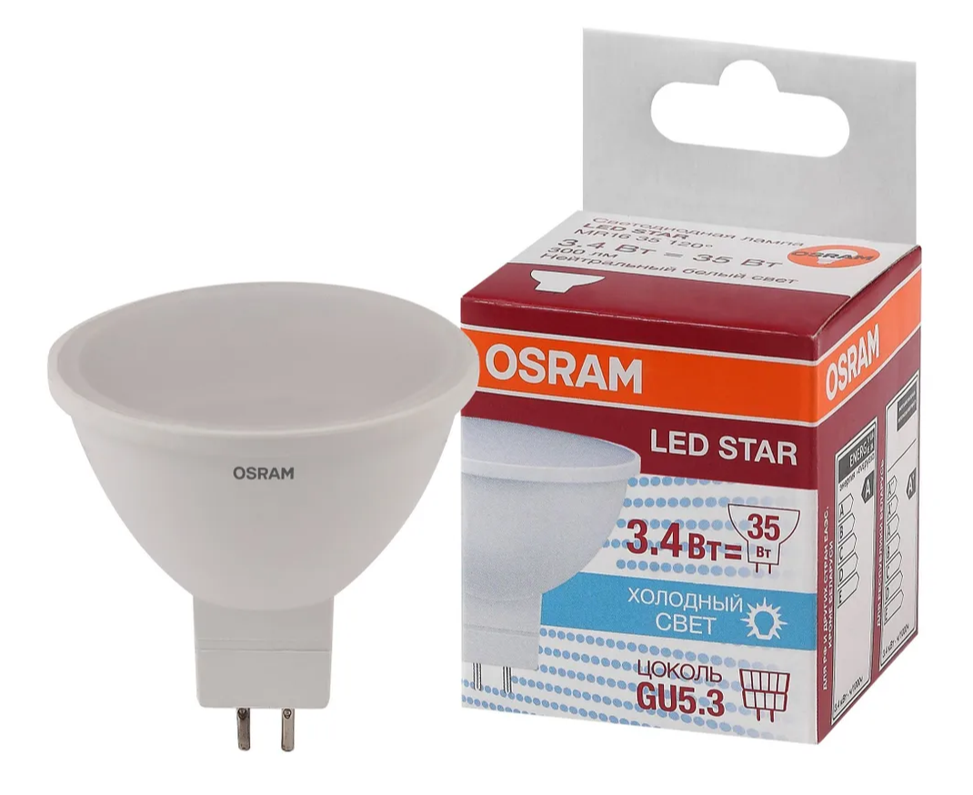 На сегодняшний день товар «Лампочка Osram LS MR16 50 110 GU5.3 4.2W/850 220-240V 380Lm 4052899981157 (4058075129030)» можно купить с кешбеком в 1 магазине: Яндекс.Маркет