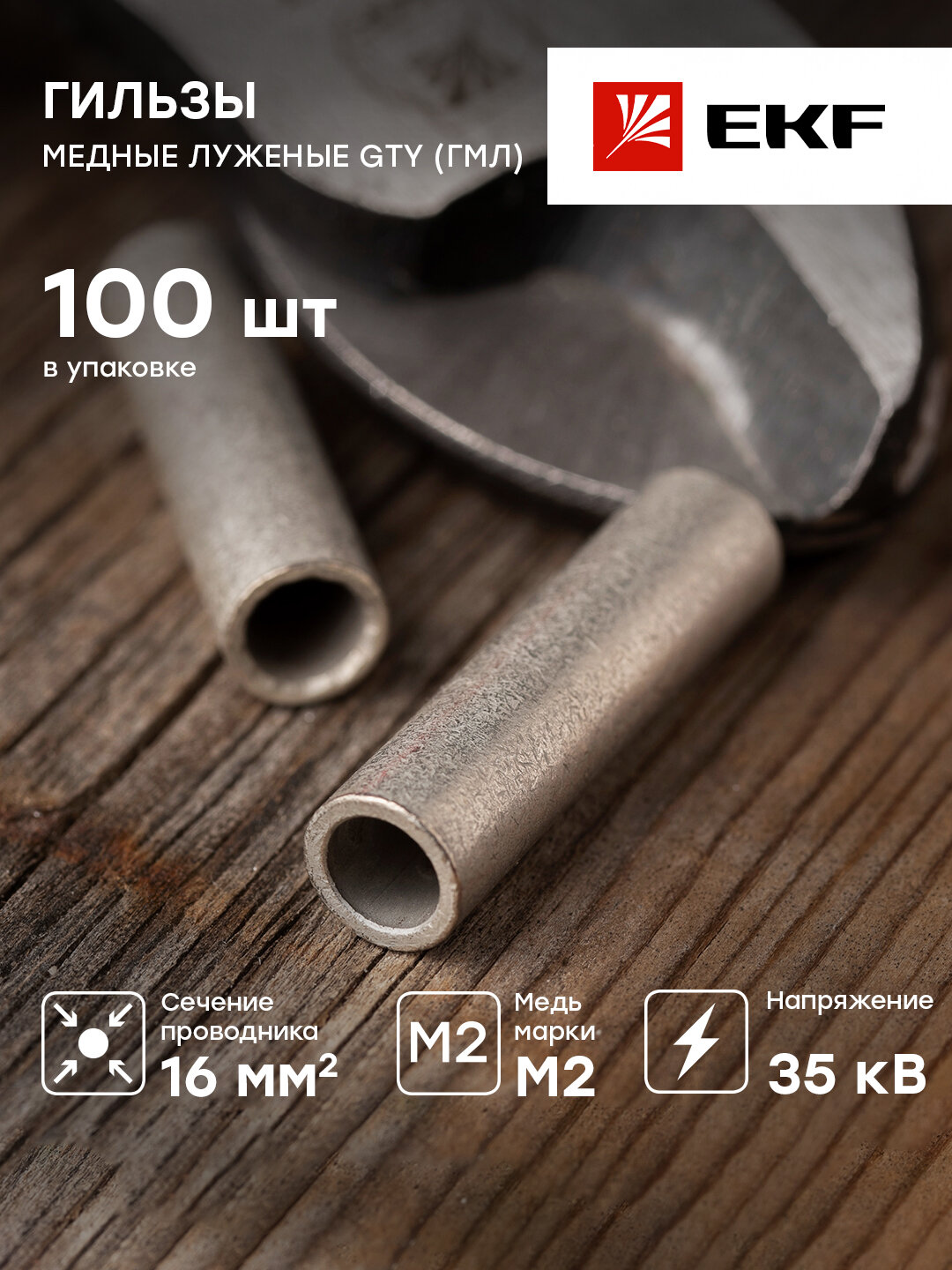 gty-16-6 Гильза соединительная медная луженая (ГМЛ) PROxima Упаковка (100 шт.) EKF