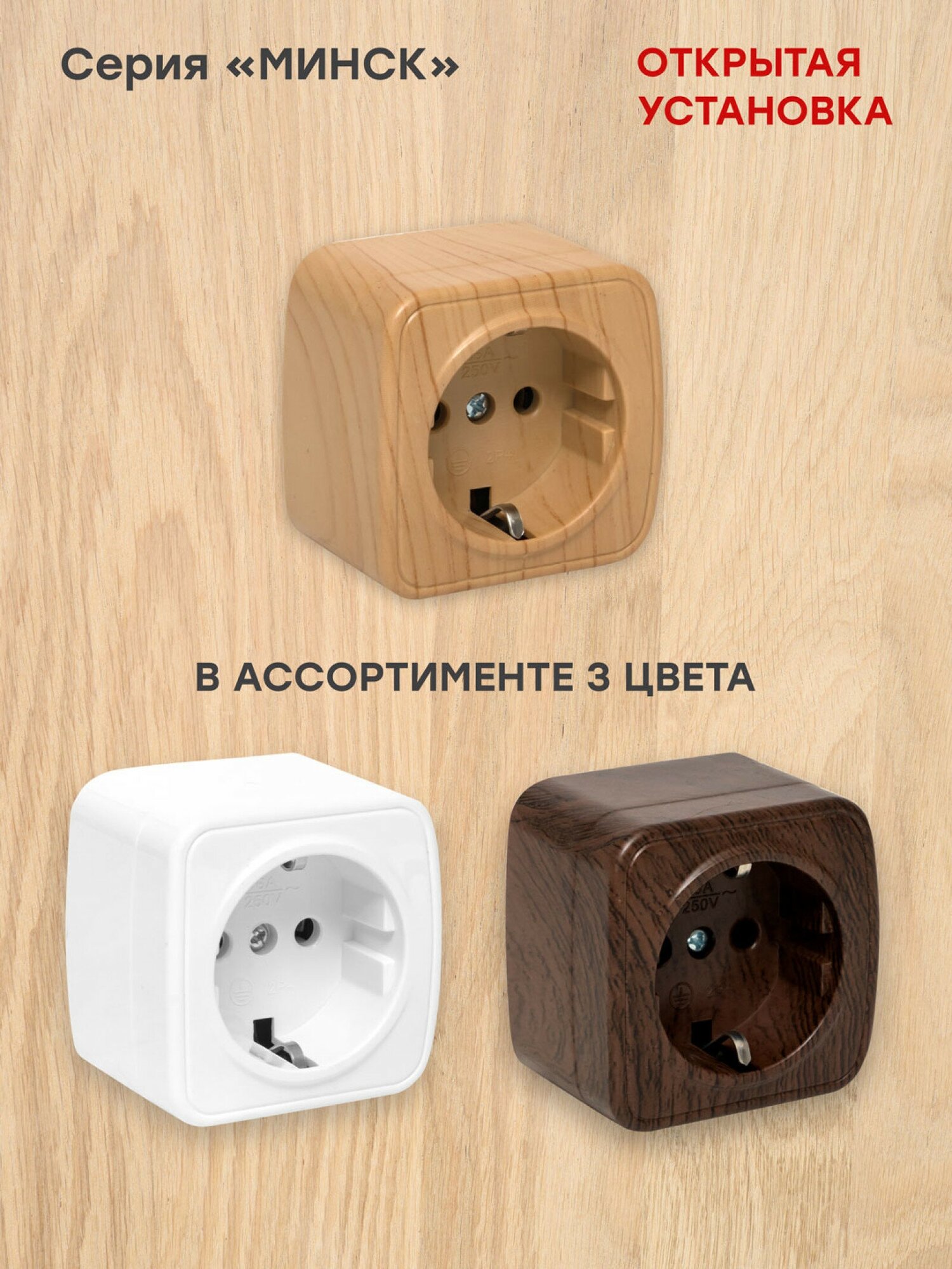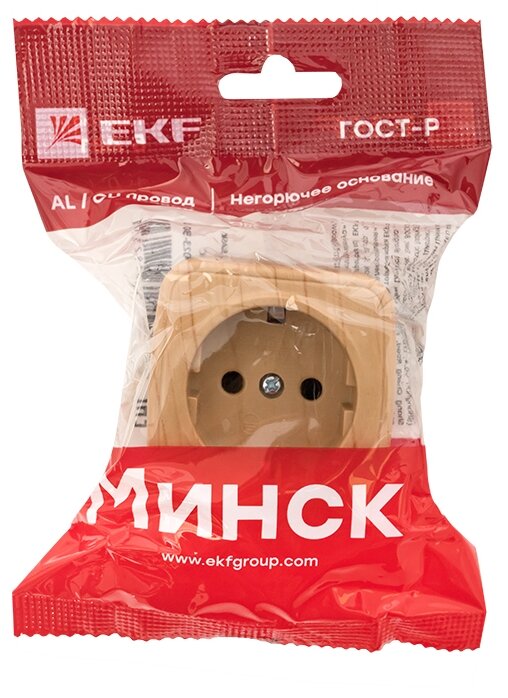 EGR16-028-30 Розетка 1-местная ОП Минск 16А с заземлением светлое дерево EKF Basic