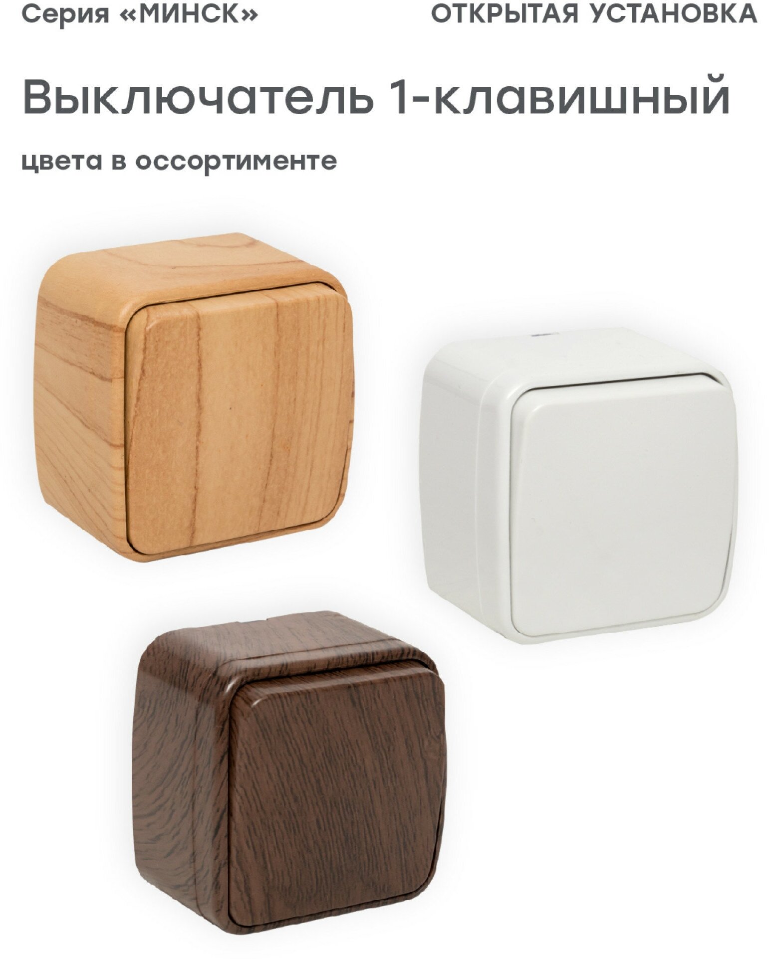 ОПИСАНИЕ. Дополнение к основной серии электроустановочных изделий для открытой проводки Минск - компания EKF предлагает вашему вниманию изделия в цвете светлое и темное дерево. Данный продукт сочетает в себе все преимущества и качество основной линейки с дизайном под дерево. Все изделия изготовлены методом окрашивания с дальнейшей фактурной текстуризацией, что великолепно передает рисунок натуральной древесины. Такое покрытие долговечнее и практичнее пленки, которую используют многие компании на рынке. Новинка сочетается с прочими изделиями EKF имеющими окраску под дерево и позволит вам создать комплексное решение по электроснабжению вашего загородного дома или дачи. Конструкция и материалы серии специально оптимизированы для надежной и долговечной службы изделий и быстрого и удобного монтажа. А литое основание из полностью негорючих материалов сделает использование в условиях деревянного дома максимально безопасным. ПРЕИМУЩЕСТВА. Пластичные пружины в контактной. Компактный корпус. Изделия в цвете темное и светлое дерево. Удобное подключение проводников. Выштамповки с 4 сторон для подвода кабеля. ПРИМЕНЕНИЕ. Управление и организация осветительной сети помещений. Подключение различных бытовых потребителей к электрической сети. Подключение коммуникационных устройств к различным информационным сетям. Коммерческая недвижимость. Объекты инфраструктуры. Жилые помещения.