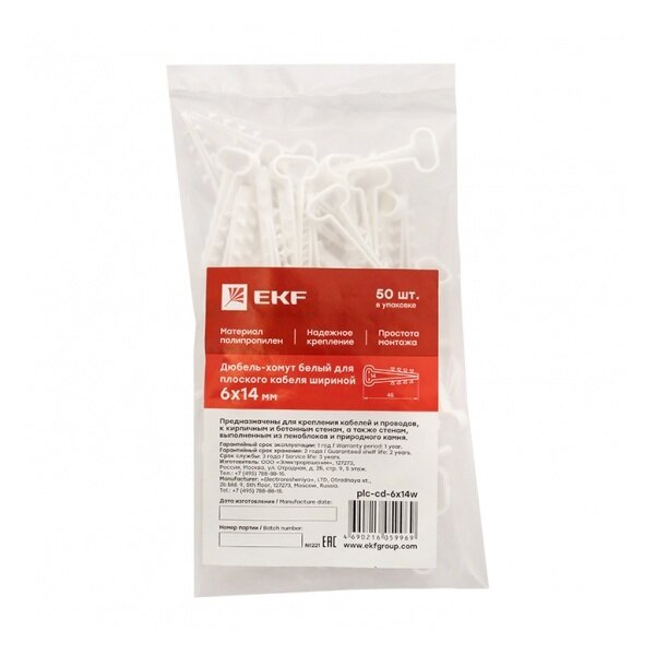 plc-cd-6x14w Дюбель-хомут (6х14 мм) для плоского кабеля белый (50 шт.) PROxima EKF
