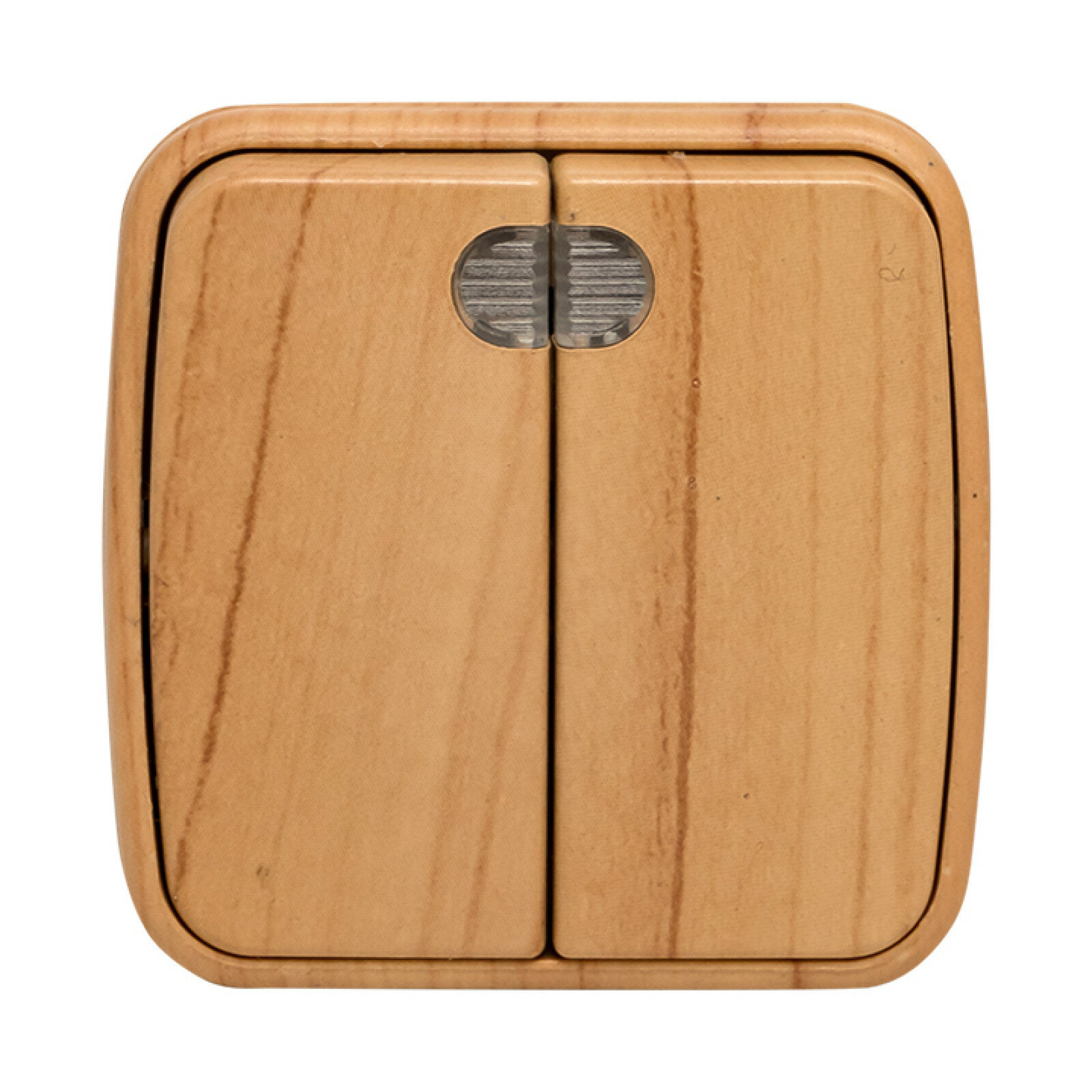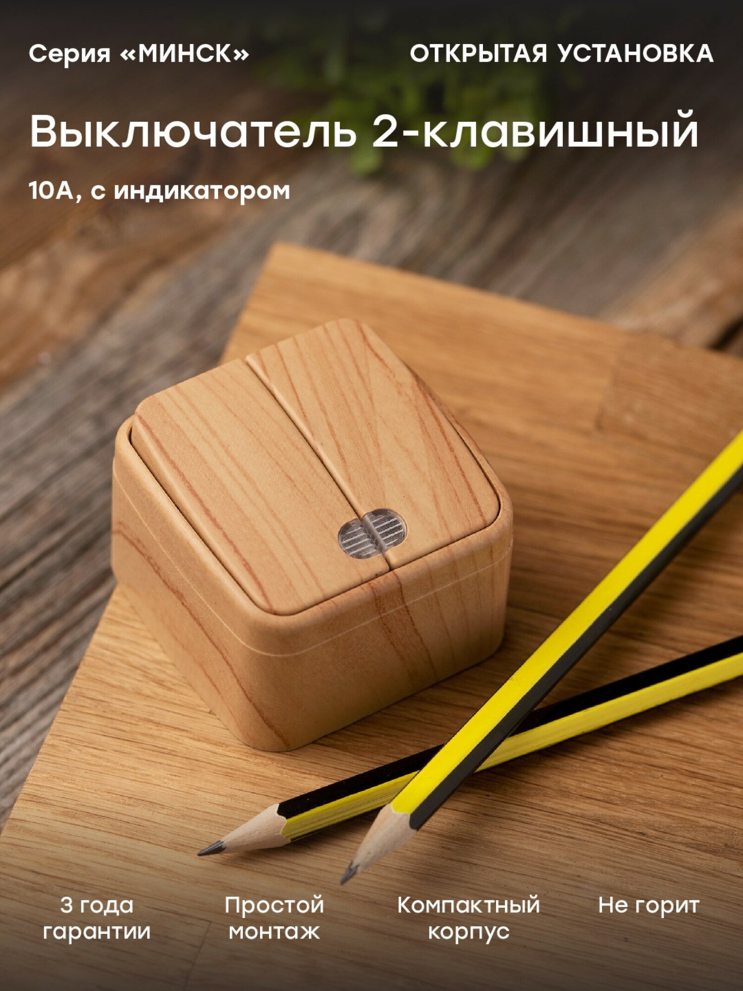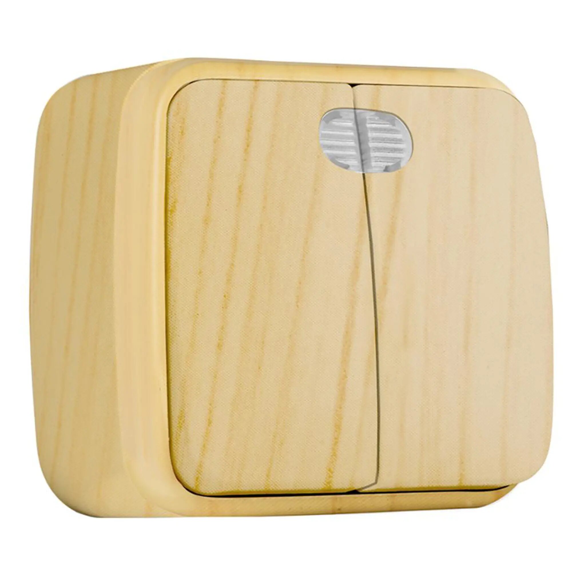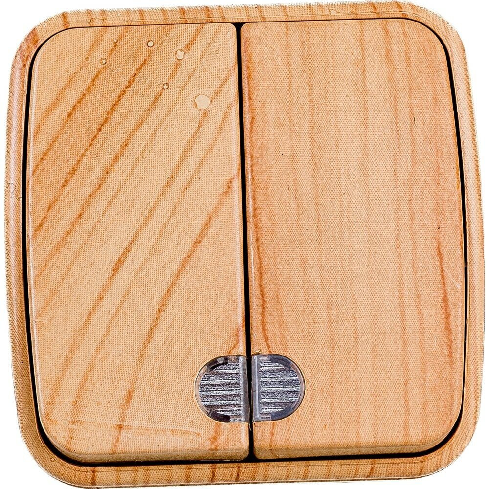 EGV10-123-30 Выключатель 2-клавишный ОП Минск 10А с индикатором светлое дерево EKF