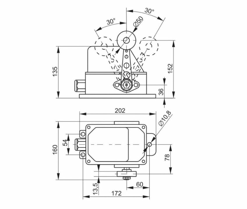 Функциональный выключатель концевой 1НЗ+1НО KV-1-701-1, торговой фирмы IEK, с типом элемента управления - рычаг с роликом, необходим для коммутации цепей управления в крановых электроприводах и устанавливается в схемах управления для ограничения линейного перемещения механизмов. Корпус устройства со стандартом защиты от воздействия пыли и влаги IP44 и размером 160 x 152 x 202 мм сделан из высококачественного и термически устойчивого материала: металла с порошковым покрытием. Контактная группа выполнена из меди с серебряным покрытием. Тип муфты для ввода внешних кабелей MG32. Климатическое исполнение У1 допускает эксплуатацию на открытом воздухе с воздействием любых атмосферных факторов (дождь, ливень, снег, пыль при сильном ветре) . Агрегат предусмотрен для работы в электроцепи с токовой нагрузкой до 10 А при рабочем напряжении переменного тока 400 В с частотой 50 Гц и 10 А при 400 В в электроцепи постоянного тока.