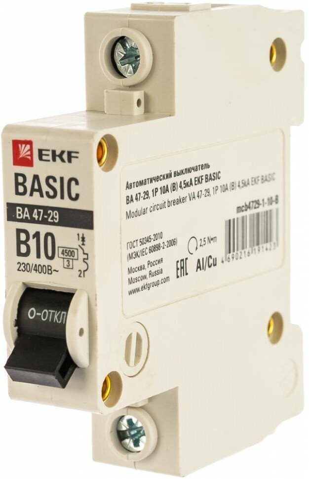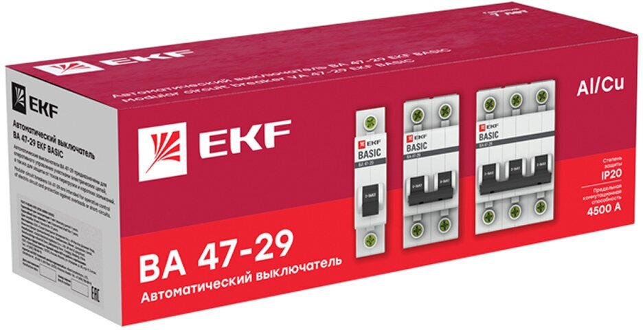 - mcb4729-1-06C Автоматический выключатель 1P 6А (C) 4,5кА ВА 47-29 EKF Basic