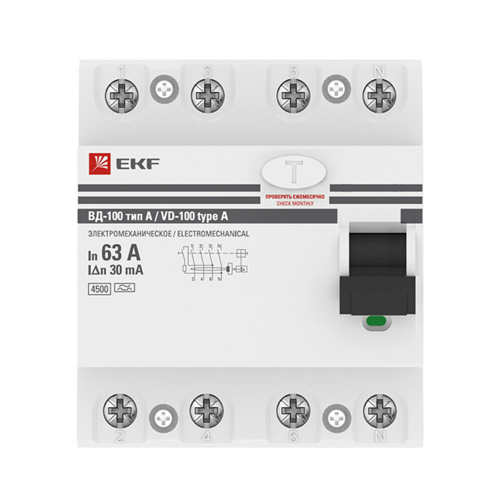 elcb-4-63-30-em-a-pro Устройство Защитного Отключения ВД-100 4P 63А/30мА (эл-мех тип А) PROxima EKF