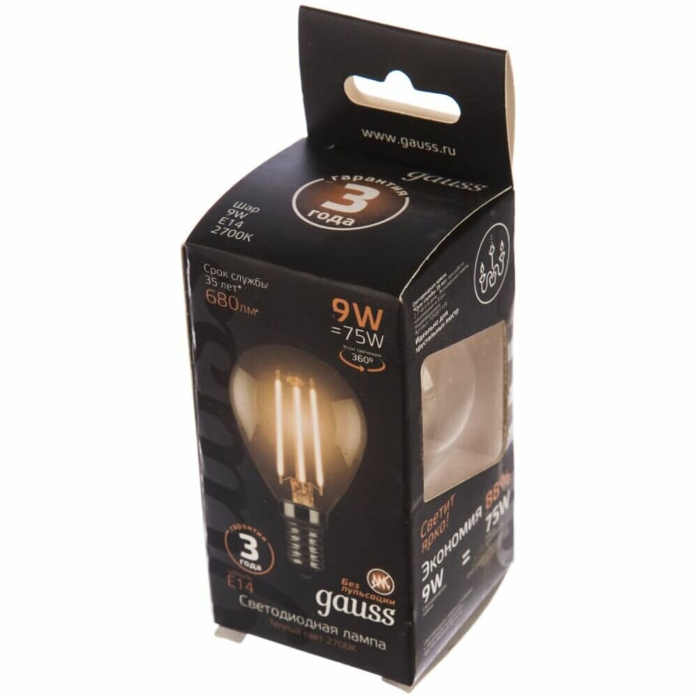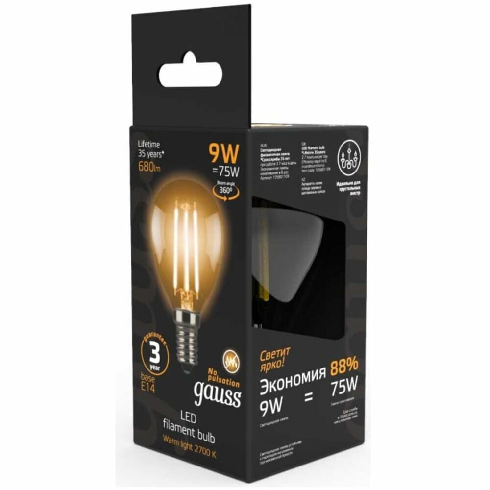 Светодиодные филаментные лампы GAUSS - это новейшие технологии в светотехнике. Лампы имеют привычный вид классических ламп накаливания, освещают пространство на 360° и дают больше света по сравнению с обычными светодиодными лампами за счет прозрачной колбы. Идеально подходят для хрустальных люстр и открытых светильников, а также для реализации дизайнерских решений, где важен вид классических ламп накаливания.Светодиодные лампы Gauss имеют высокую цветопередачу, низкую температуру нагрева лампы, стабильную работу при перепаде температур. Яркость, потребляемая мощность, срок службы лампы - каждый из этих моментов идеально продуман и сбалансирован для наибольшей степени рациональности использования данной модели.Продукция Gauss выполнена из экологически чистых материалов - не содержит ртути, свинца и фосфора, не выделяют токсичных веществ и не нуждаются в особой процедуре утилизации, Gauss мгновенно включаются, и имеет максимальную яркость с первой секунды - не требуют разогрева в отличие от КЛЛ.