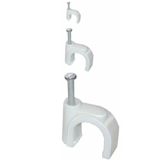 Предназначены для быстрого и надежного крепления круглых и плоских кабелей. Возможно крепление к дереву, прессованному картону и швам кирпичной кладки, к штукатурке, бетону, кирпичу. Изготовлены из гибкого негорючего ударопрочного полипропилена, гвоздь - закаленная оцинкованная сталь.