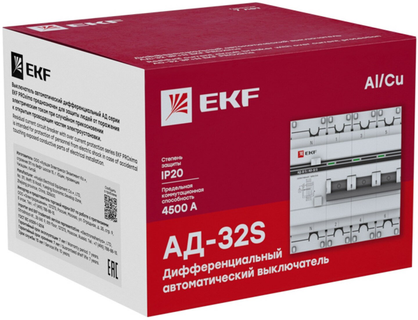Дифференциальный автоматический выключатель EKF PROxima АД-32, селективный, 3P+N, 63А, С, 300мА предназначен для защиты людей от поражения электрическим током при случайном прикосновении к открытым проводящим частям электроустановки, защиты электроустановки (ЭУ) при повреждении изоляции проводников и неисправностях ЭУ, предотвращения возгораний и пожаров, возникающих вследствие протекания токов утечки и развивающихся из них коротких замыканий, замыканий на корпус и замыканий на землю, автоматического отключения участка электрической сети при перегрузках и токах короткого замыкания. Применяется в электрических цепях переменного тока номинального напряжения 230В/400В и частотой 50 Гц бытового и промышленного назначения. АД 32S (селективный) специально предназначен для выдержки заранее установленного значения предельного времени неотключения, при протекании дифференциального тока.