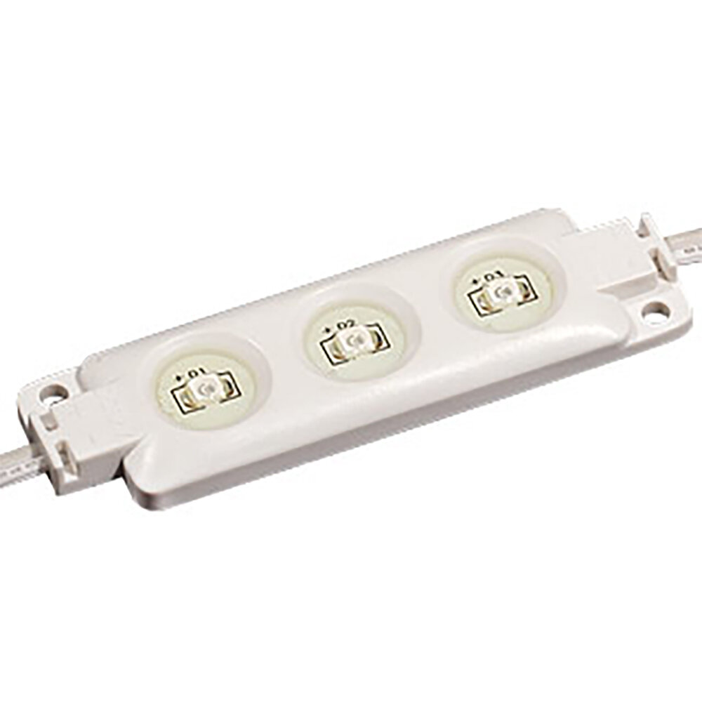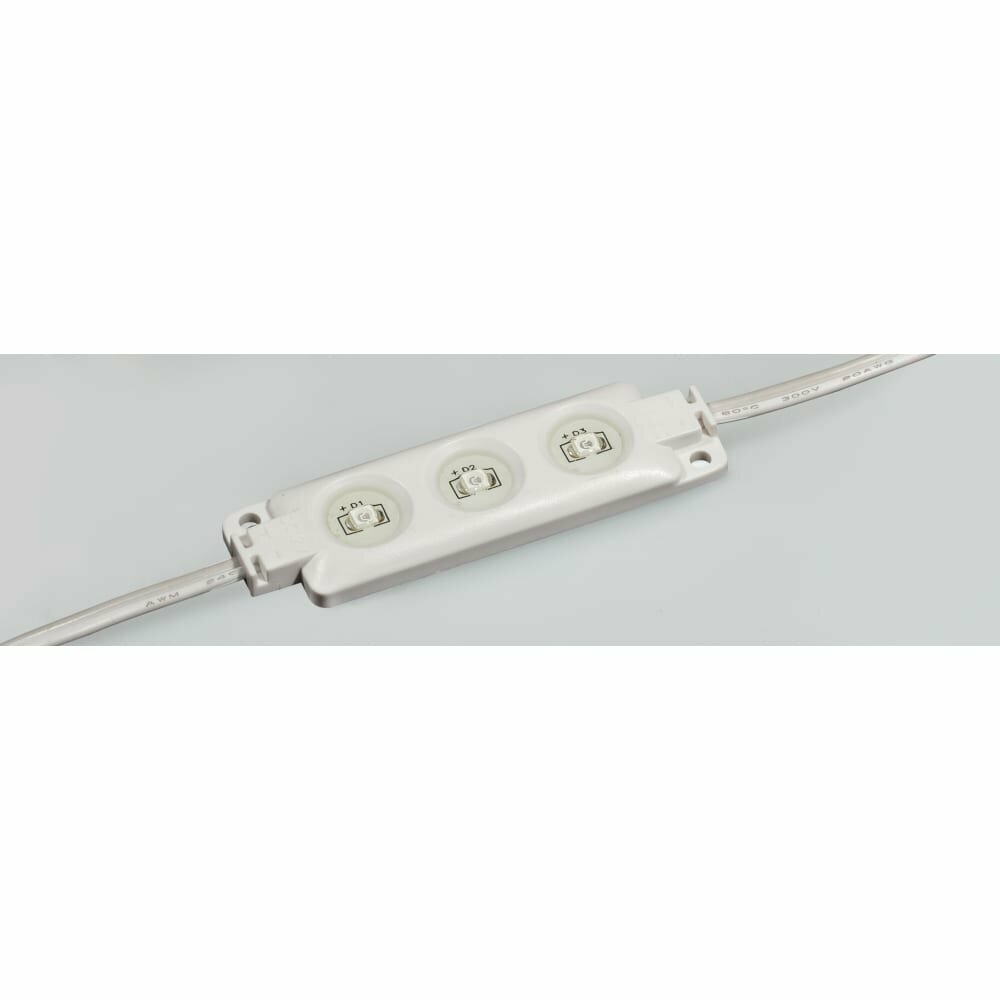 Герметичный светодиодный модуль IP65, зеленый 525 нм, напряжение 12 В, мощность 0.27 Вт, св. поток 48 лм, 3 светодиода SMD 5060, угол 120°. 20 шт на проводе, расстояние между центрами модулей 144.2 мм, длина провода между модулями 76 мм, рекомендуемая глубина установки 50–150 мм. Размер 68,2х19.5х5.7 мм. Гарантия 3 года.