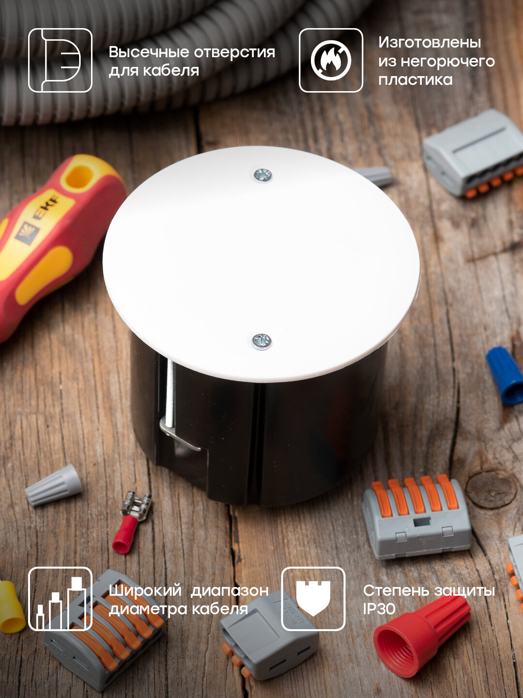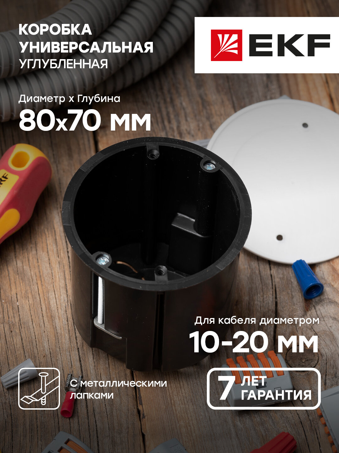 plc-kmp-020-028 Коробка универсальная установочная КМП-020-028 углубленная с металлическими лапками и крышкой (80х70) PROxima Упаковка (10 шт.) EKF