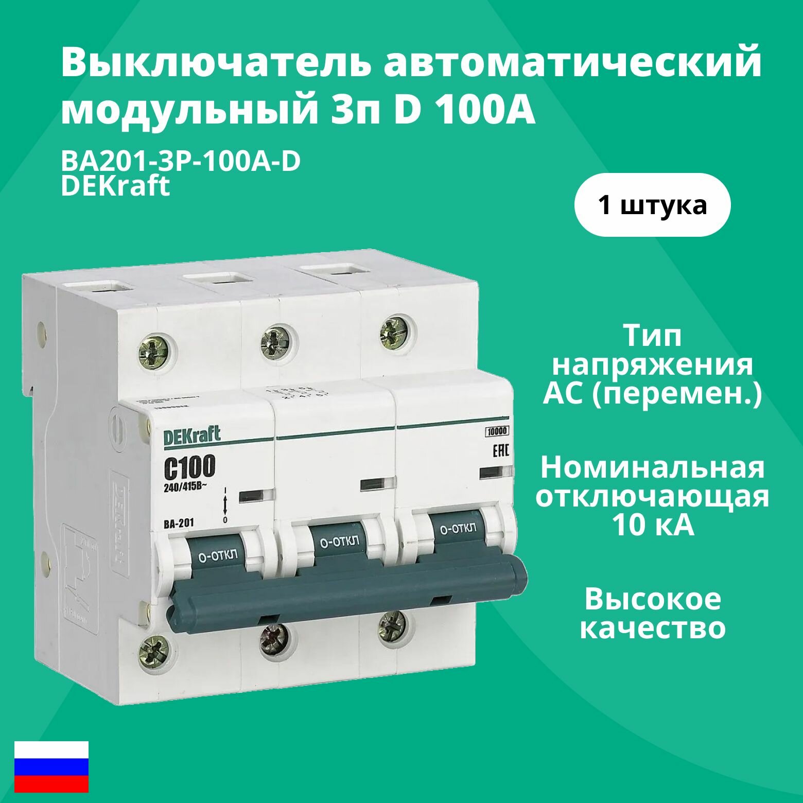ВА-201 13021DEK Автоматический выключатель трехполюсный 100А (10 кА D) Упаковка (4 шт.) DEKraft