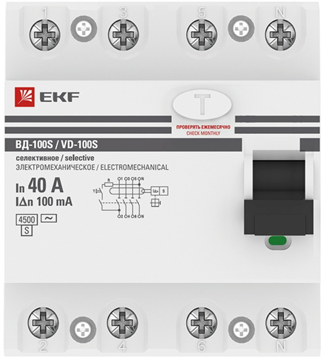 elcb-4-100-100S-em-pro Устройство защитного отключения селективное 4P 100А/100мА (электромеханическое) PROxima EKF