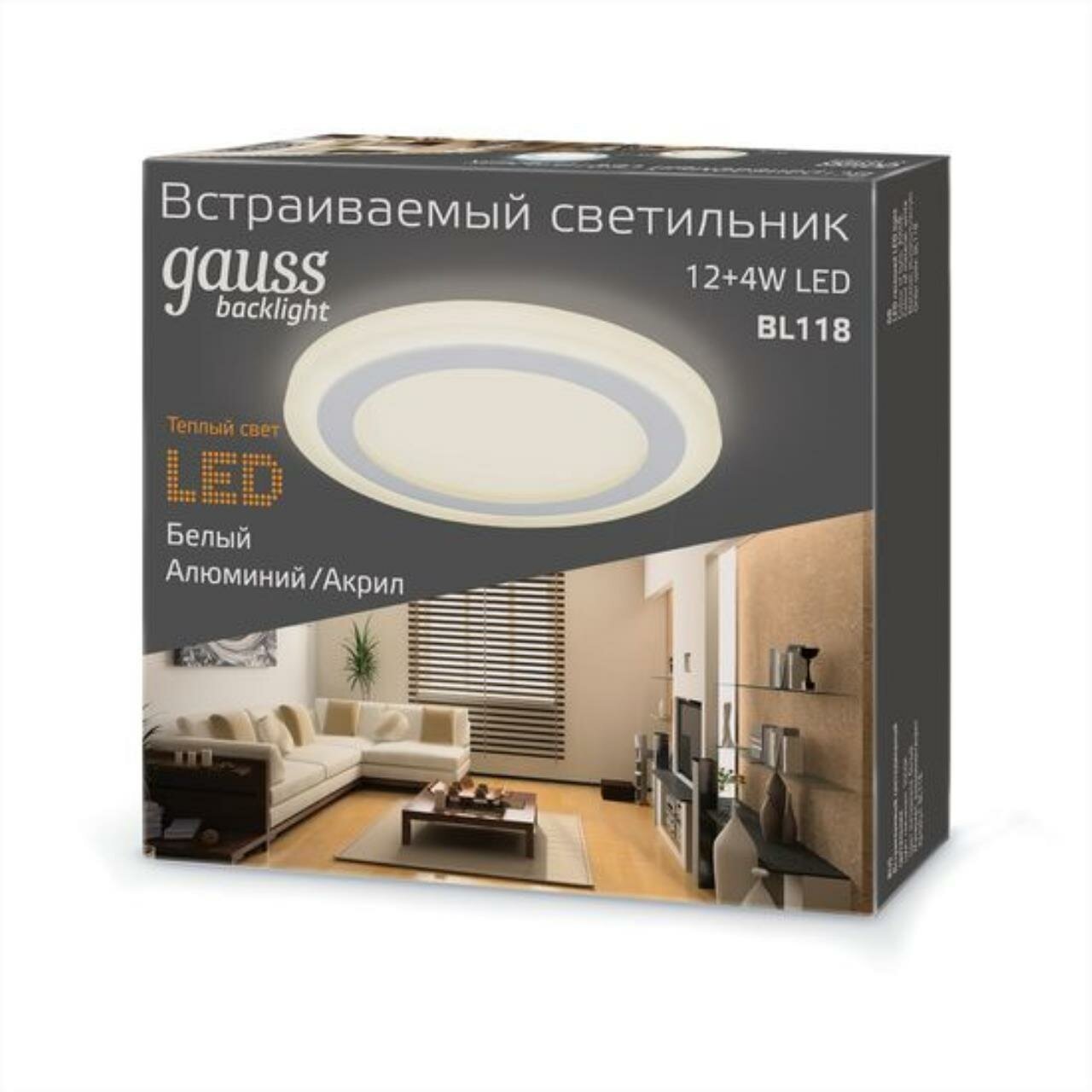 BL118 Светильник Backlight Кругл. Акрил 12+4W LED 3000K Ø190 1/20 Gauss Backlight круг 12+4W 960lm 3000K 180-265V IP20 190x31 мм